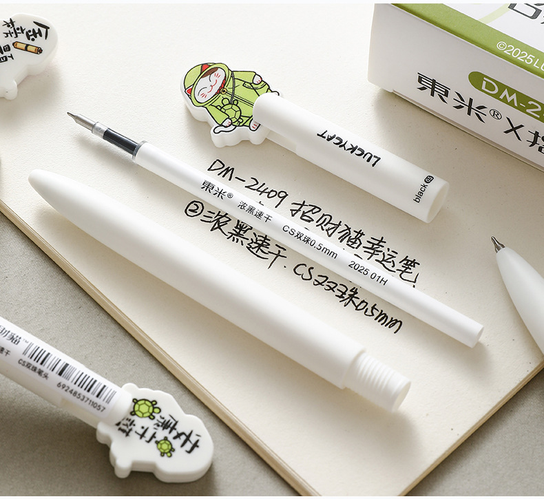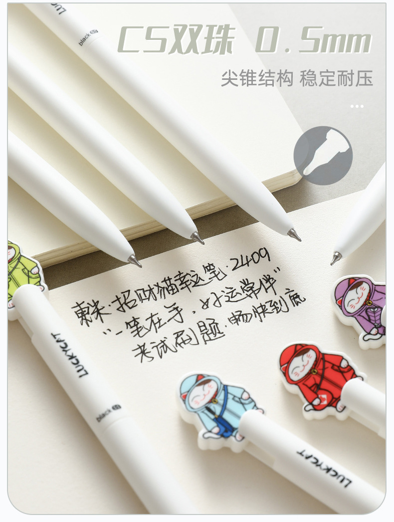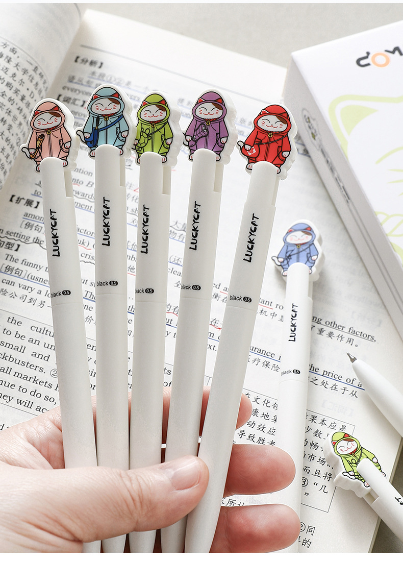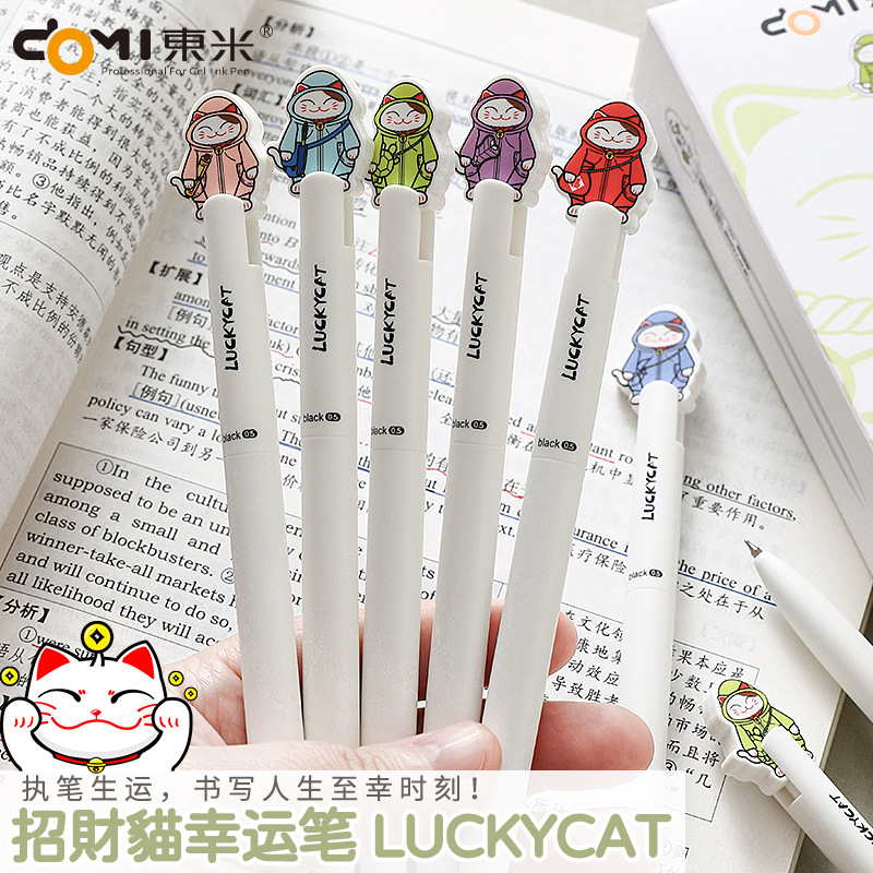 동미 운이 좋은 고양이 행운의 펜 높은 색상 값 프레스 젤 펜 귀여운 고양이 학생 빠른 드라이 브러시 펜 CS 더블 구슬