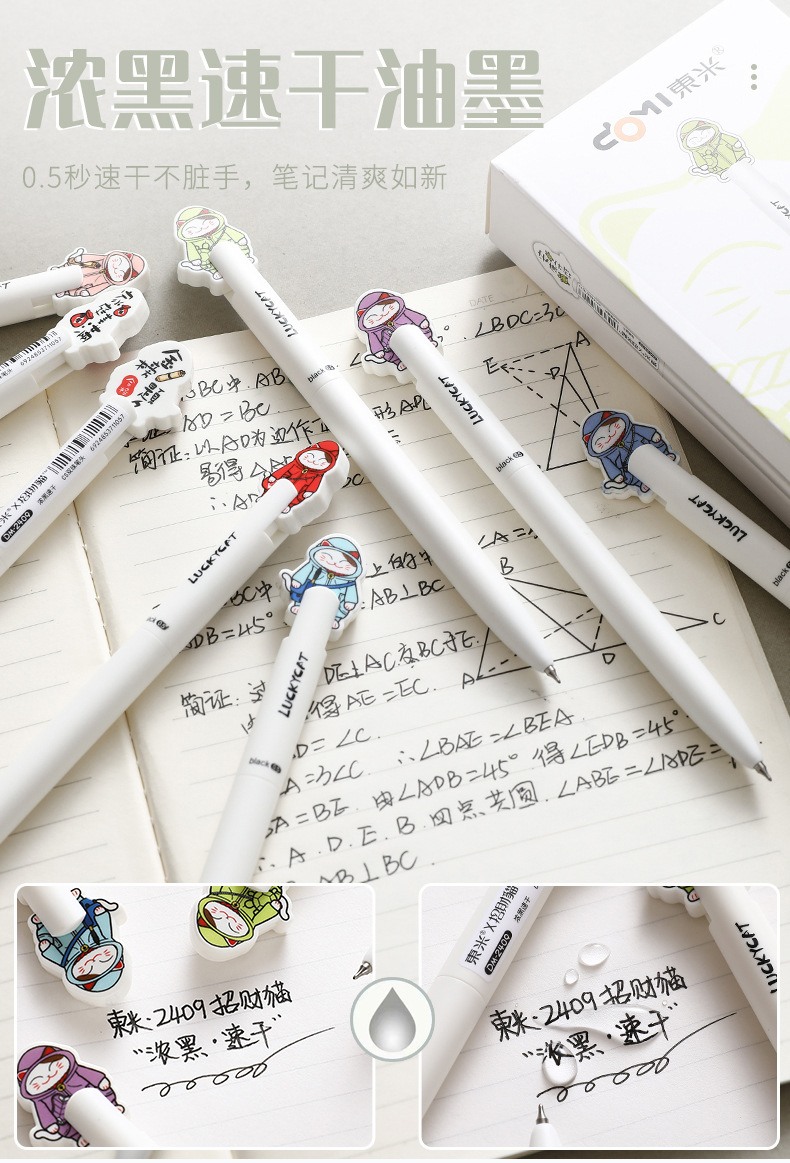 동미 운이 좋은 고양이 행운의 펜 높은 색상 값 프레스 젤 펜 귀여운 고양이 학생 빠른 드라이 브러시 펜 CS 더블 구슬스토어 가기