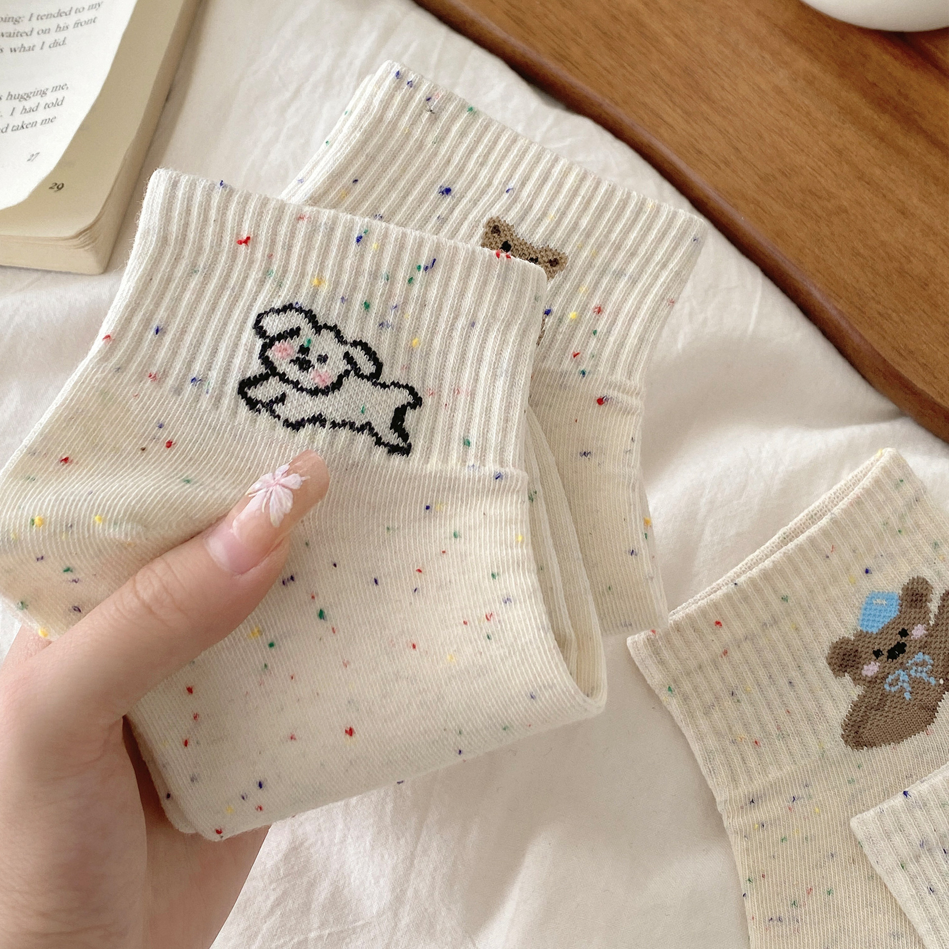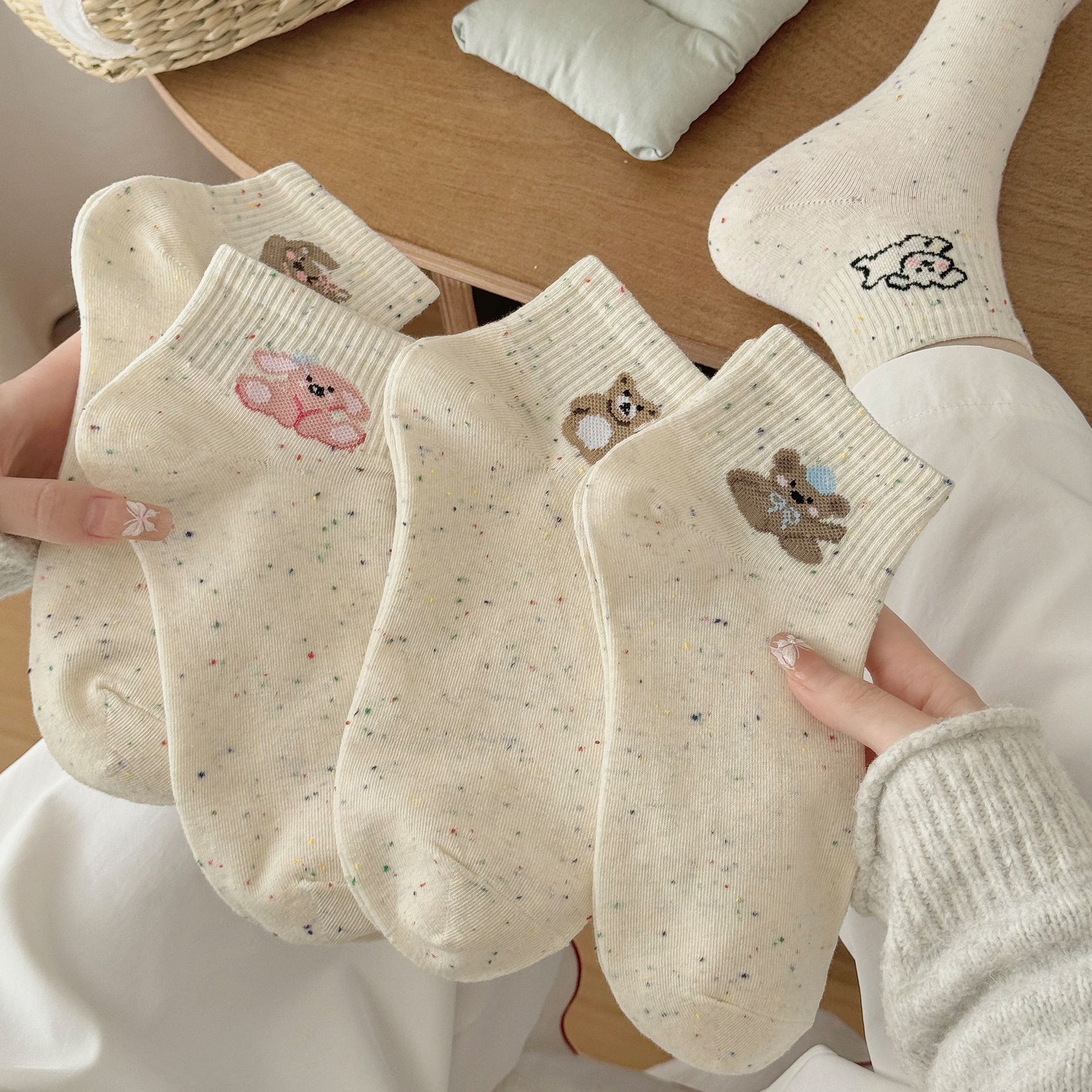 • 도트 양말 곰 [5색 혼합]