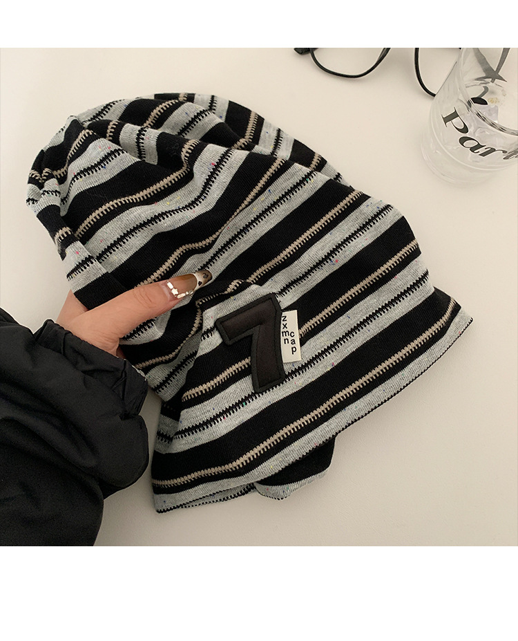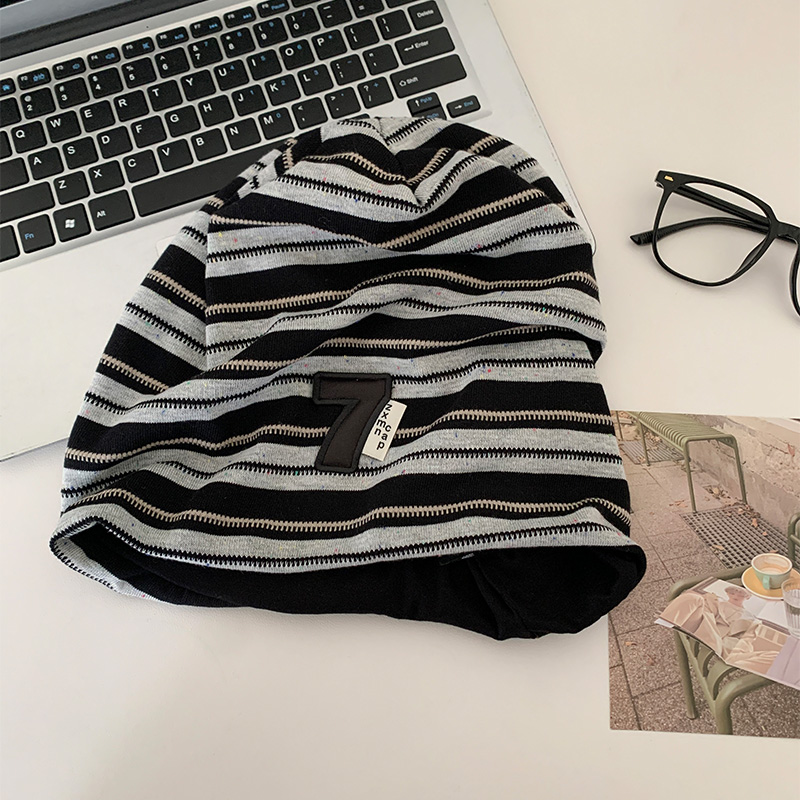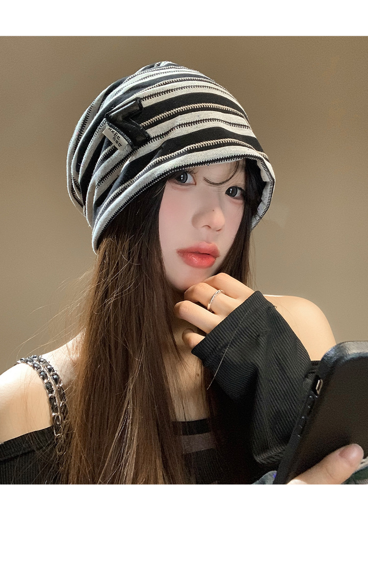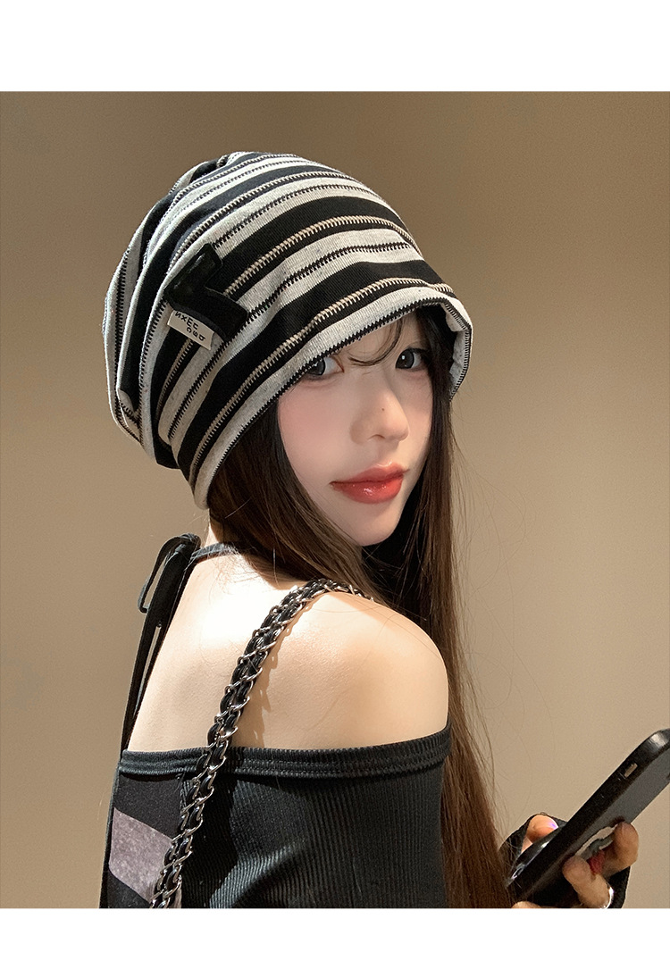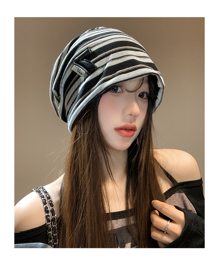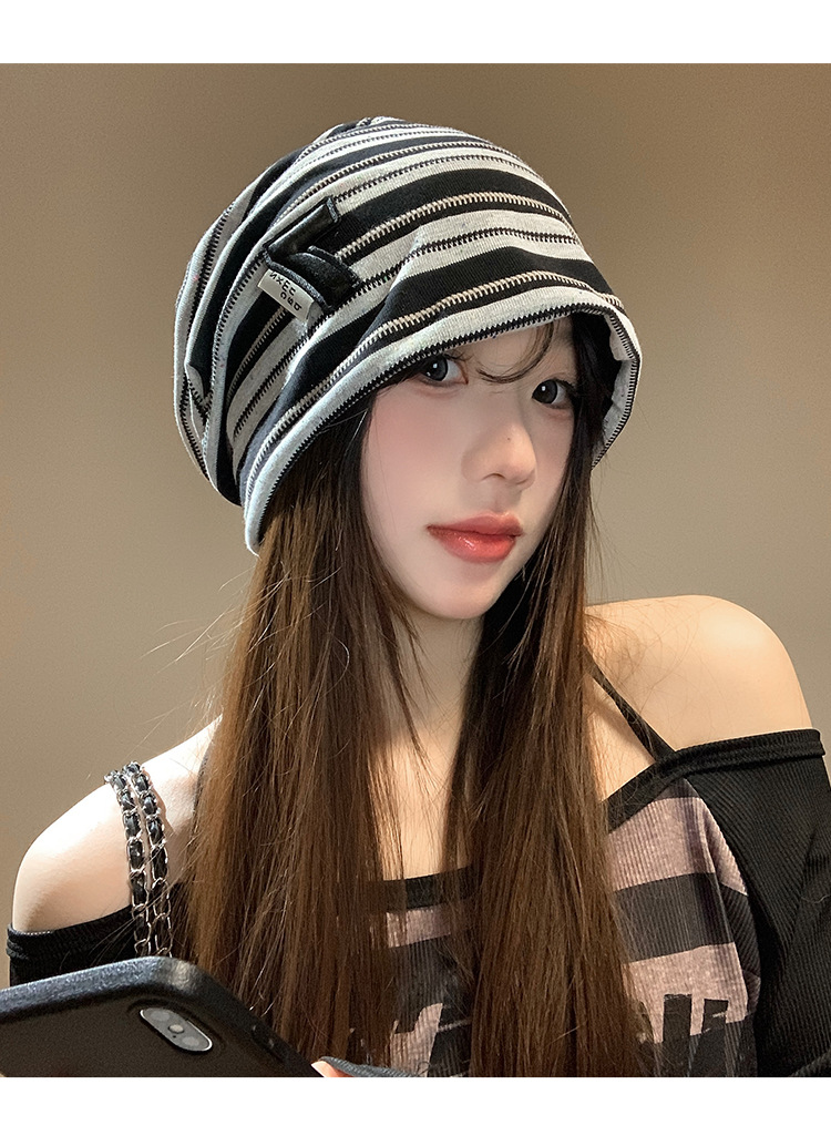 한국 스타일 게으른 스타일 줄무늬 힙 모자 여성의 봄과 가을 큰 머리 모든 경기 바오터우 모자 복고풍 얼굴-작은 차가운 모자