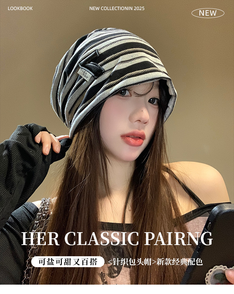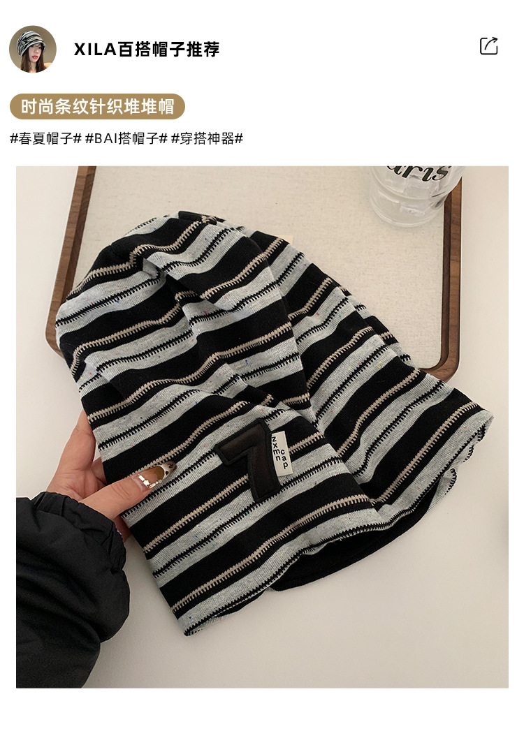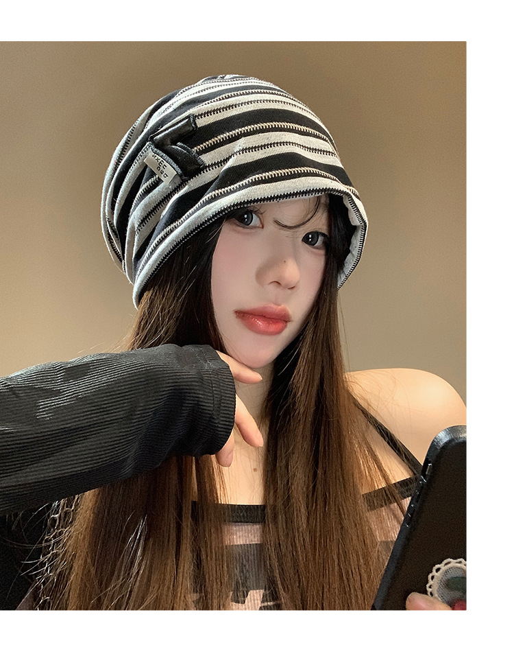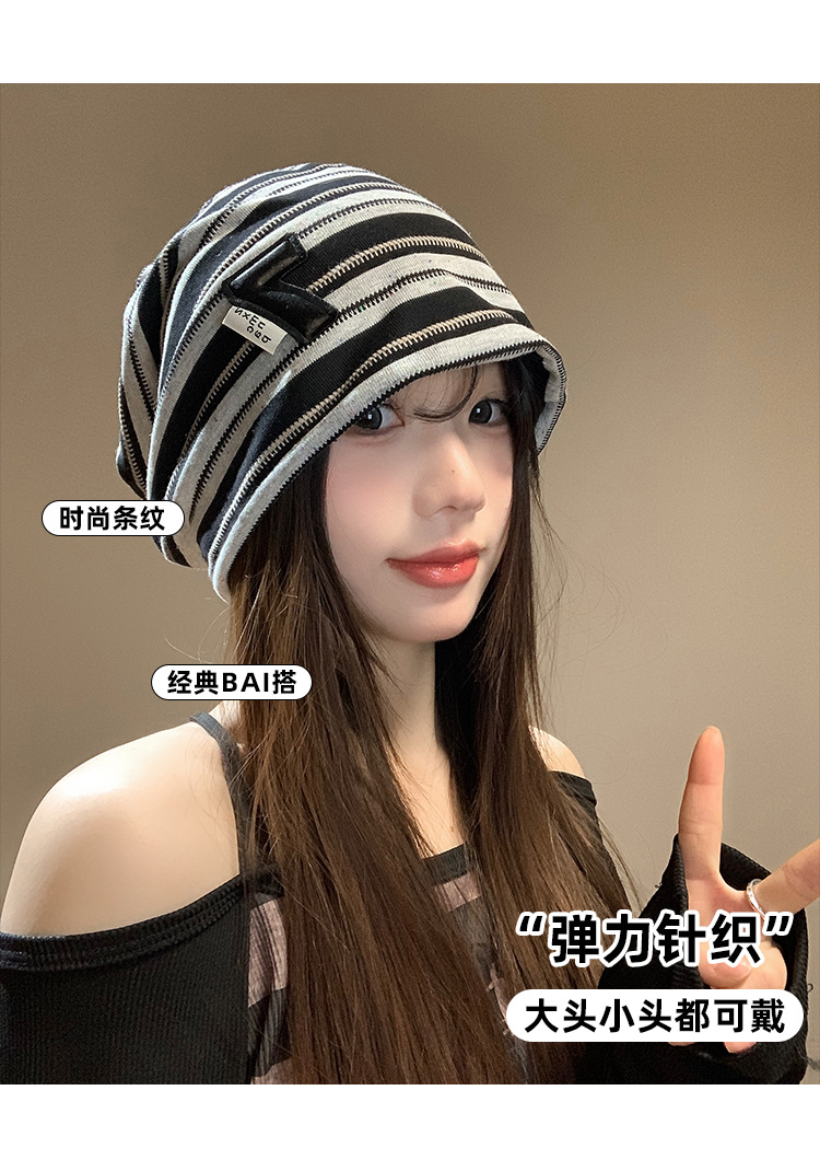 한국 스타일 게으른 스타일 줄무늬 힙 모자 여성의 봄과 가을 큰 머리 모든 경기 바오터우 모자 복고풍 얼굴-작은 차가운 모자스토어 가기