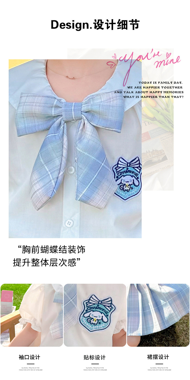 • 파란색 셔츠 + 스커트 + 나비 넥타이