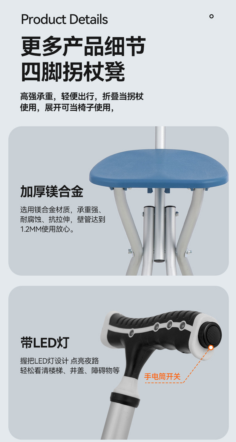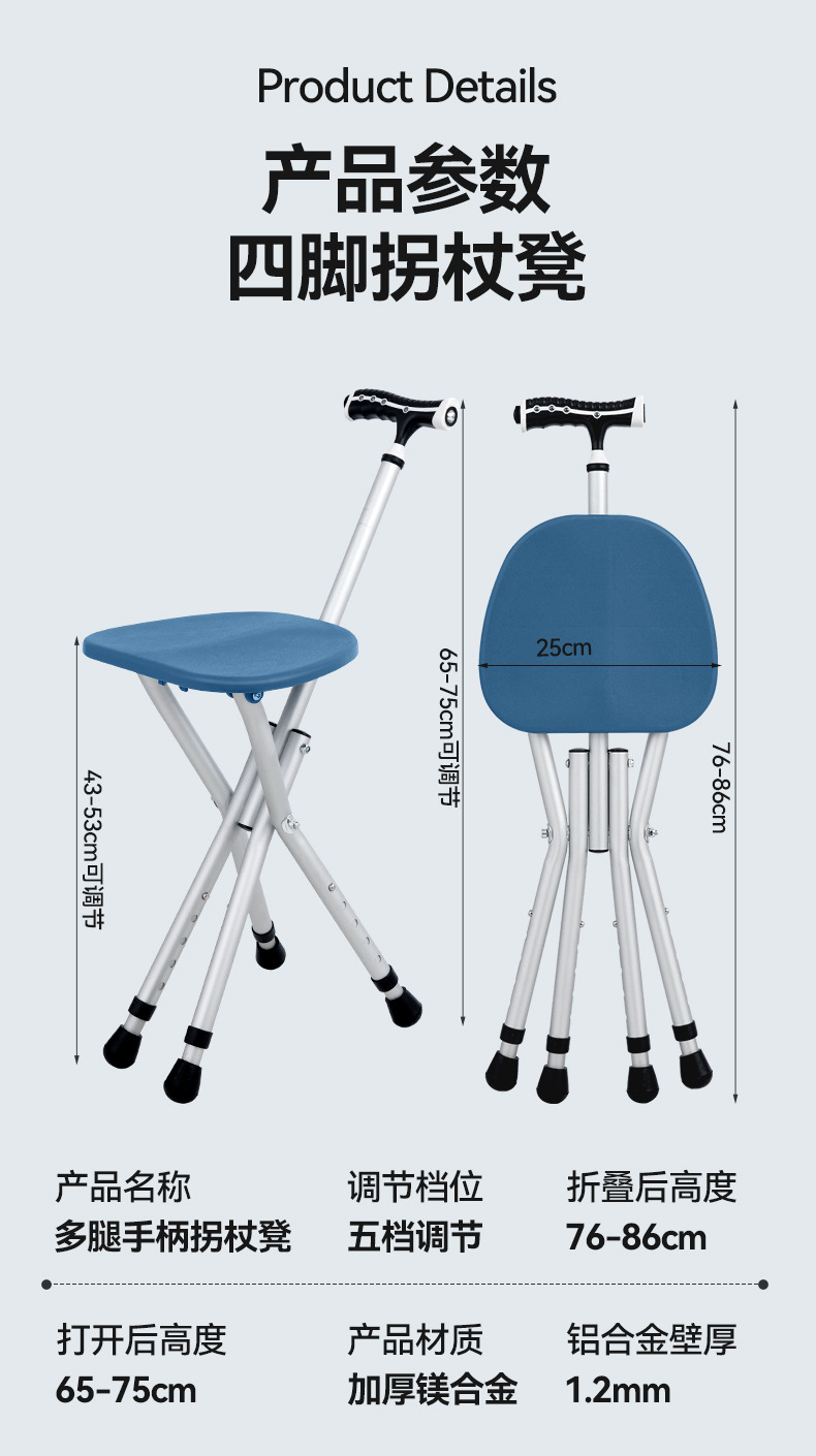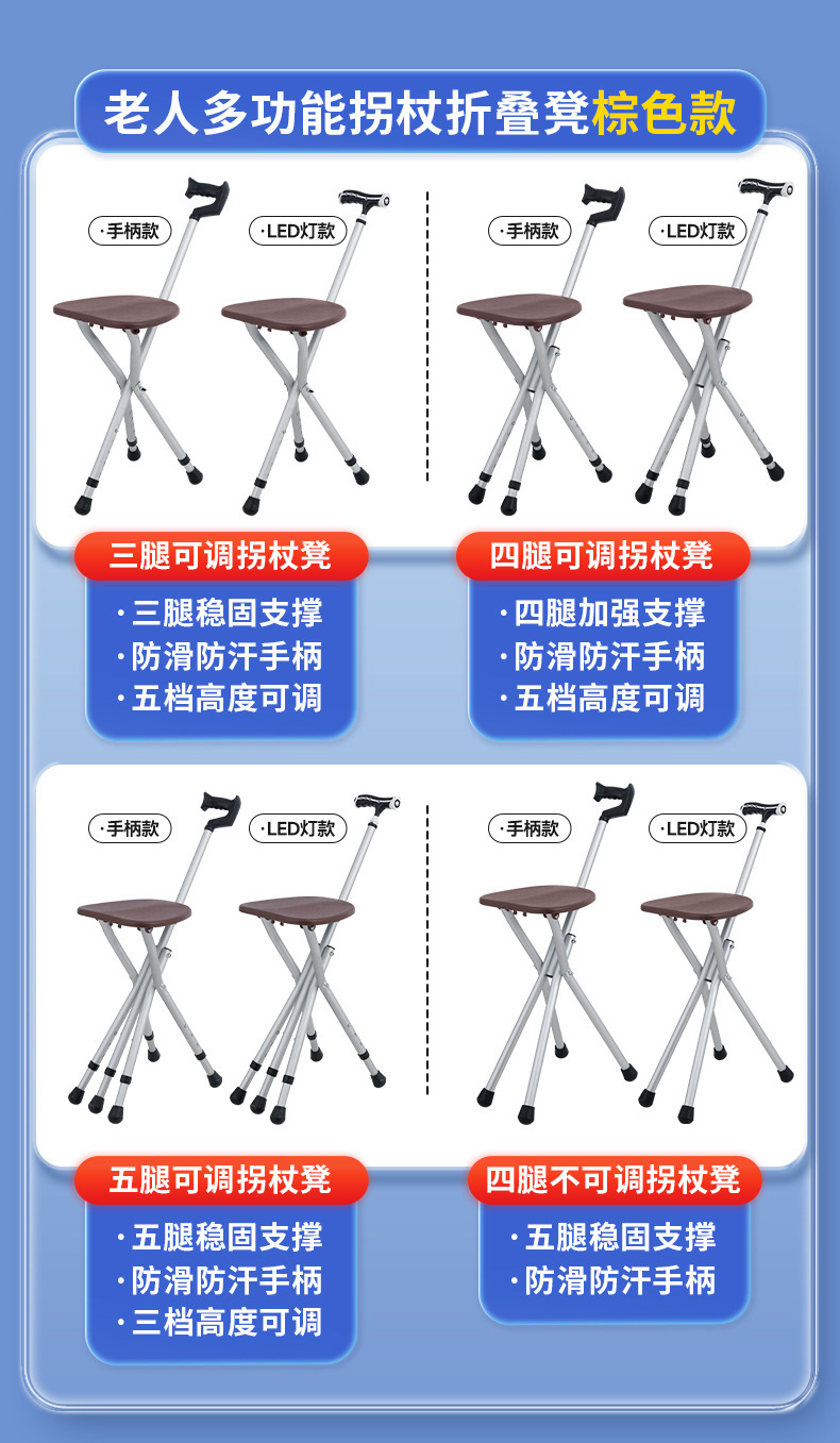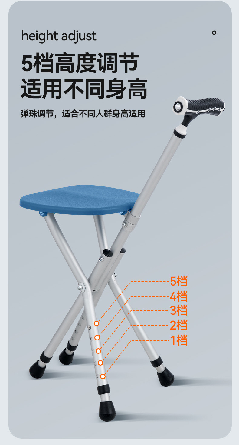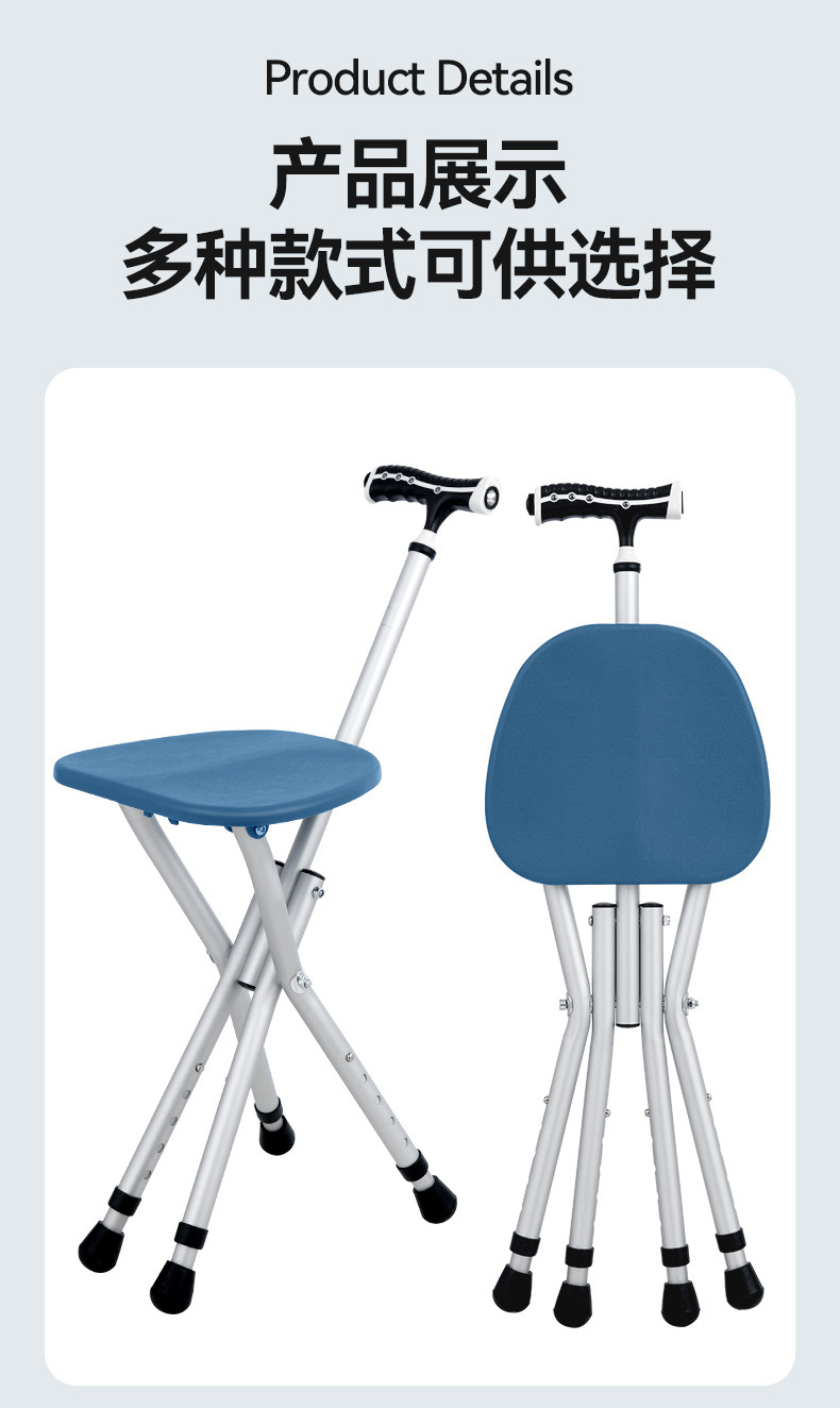 노인용 지팡이 의자, 노인용 지팡이, 다기능 미끄럼 방지 경량 지팡이, 접이식 의자