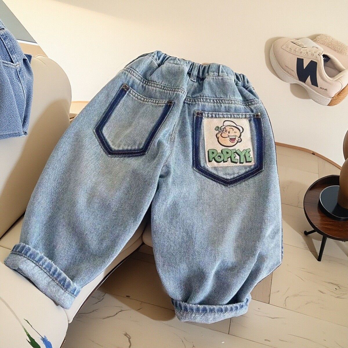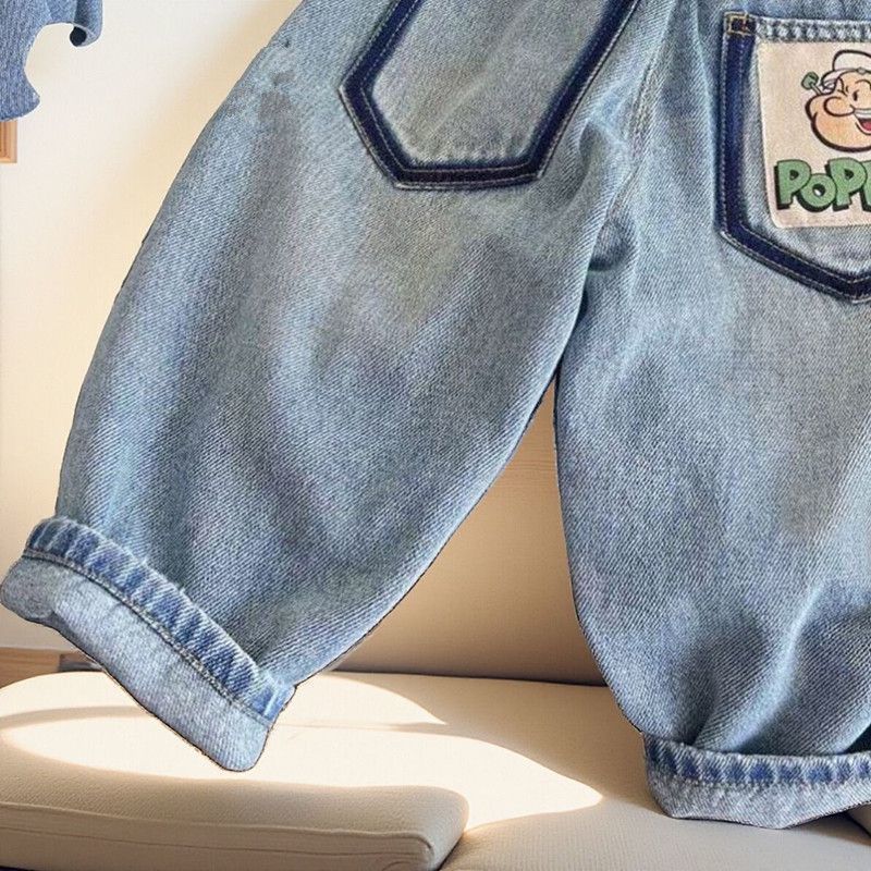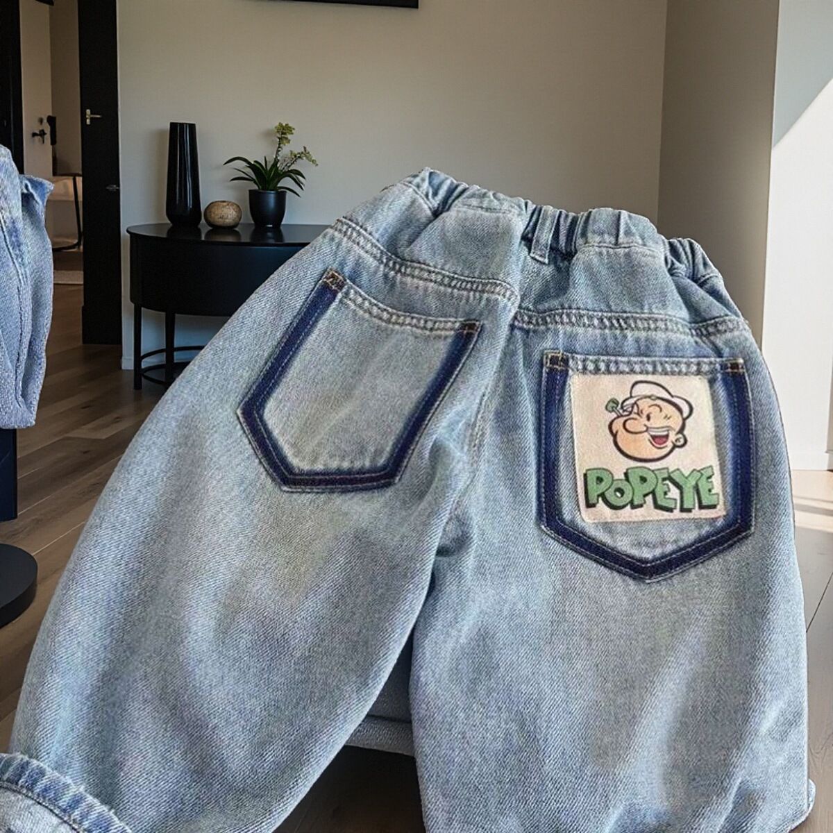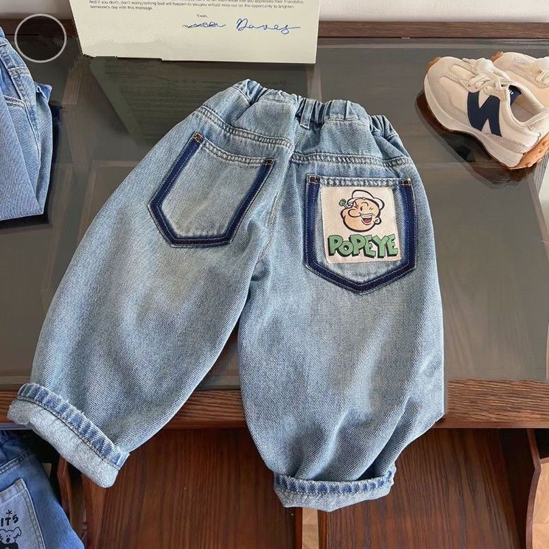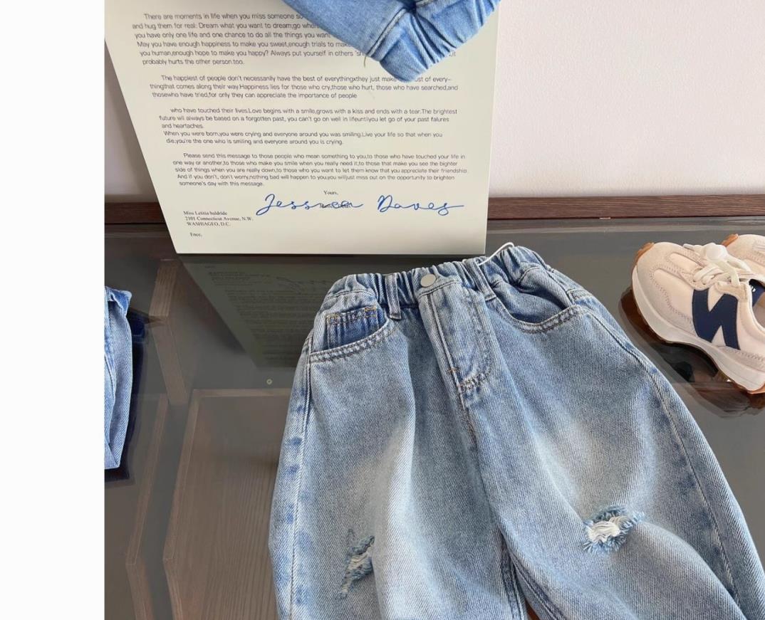 새로운 한국 아동복 ruffian 잘 생긴 소년 청바지 어린이 봄 의류 간단한 아기 느슨한 캐주얼 스트레이트 바지 바지스토어 가기
