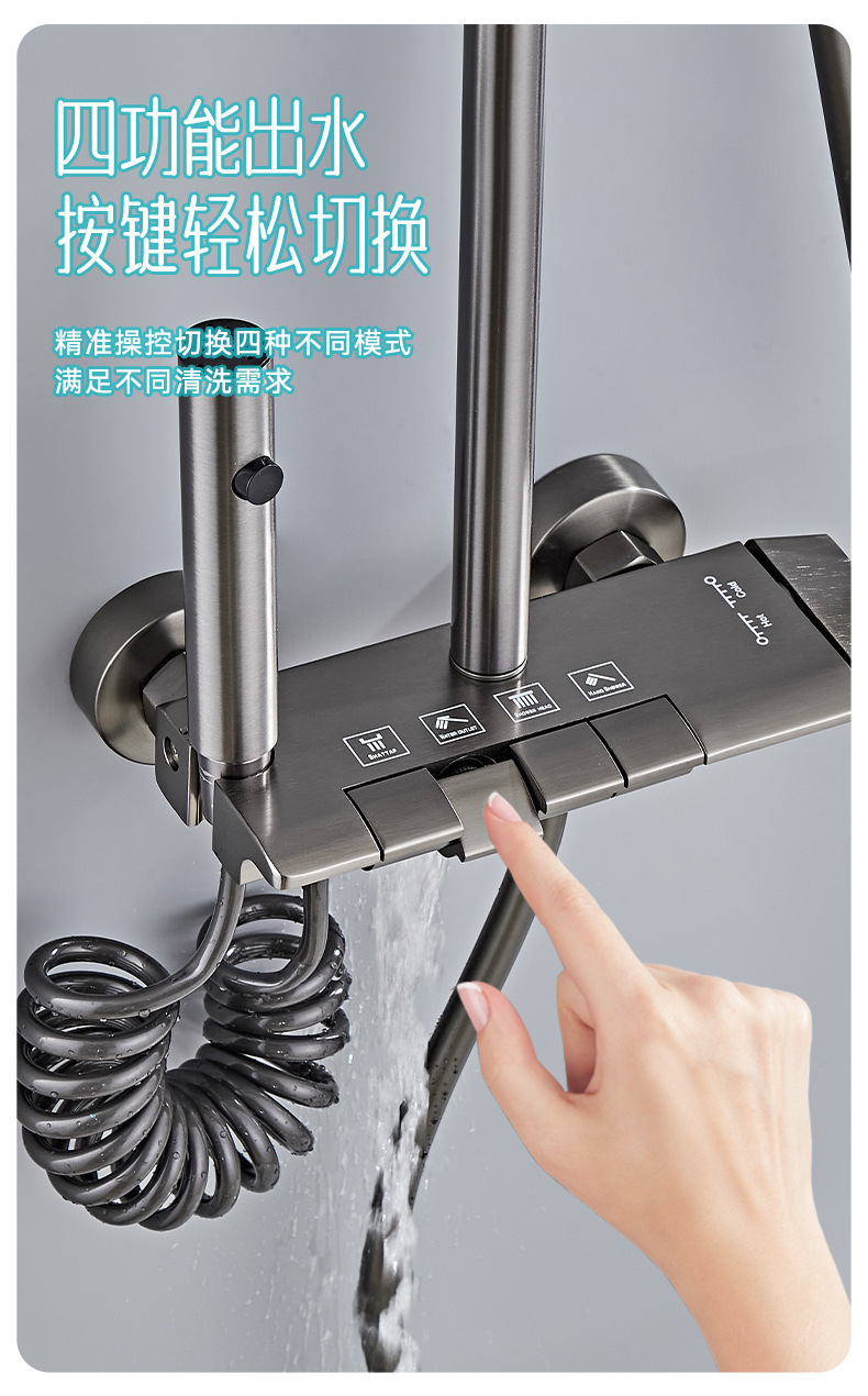 정품 항온 샤워 키트 전체 구리 가정용 욕실 화장실 건 그레이 레인 부스터 샤워 헤드