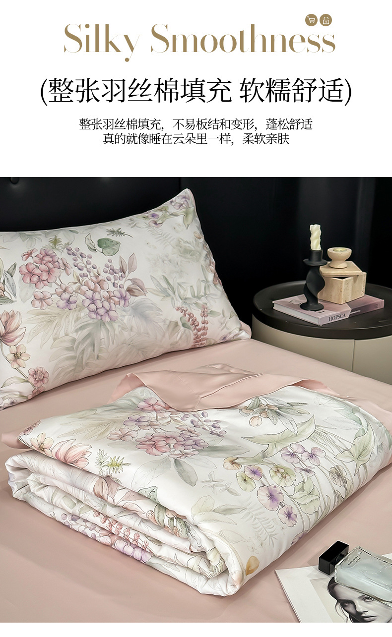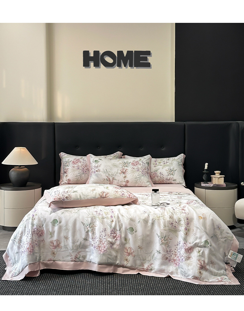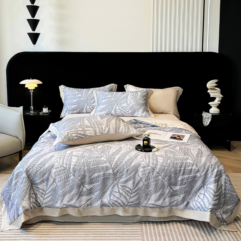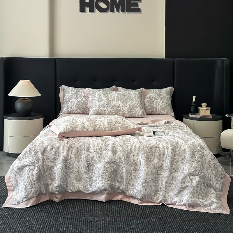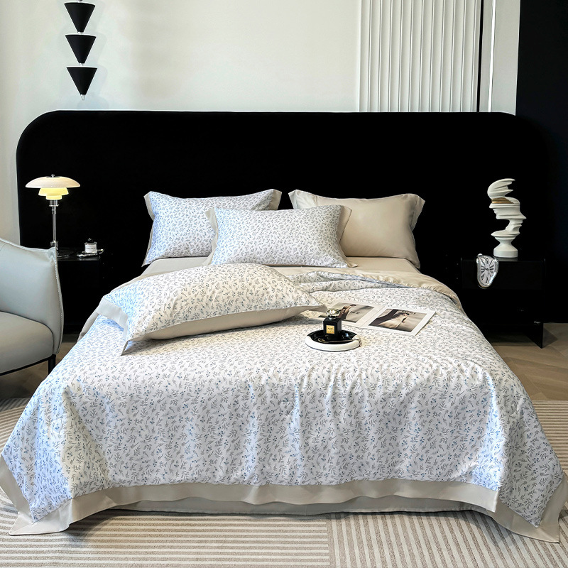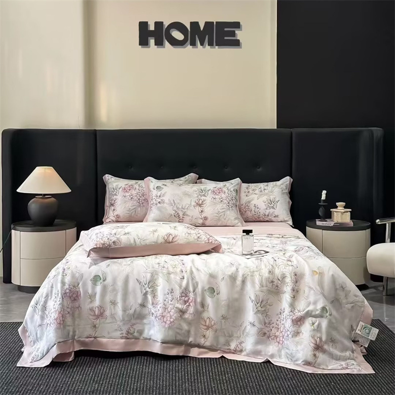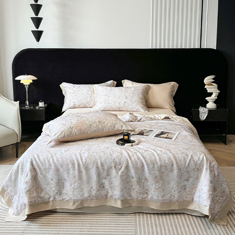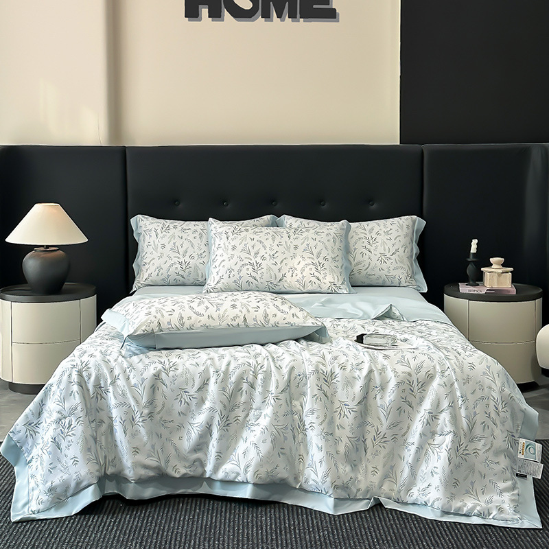 가벼운 럭셔리 텐셀 여름 퀼트 아이스 실크 여름 퀼트 여름 홈 기숙사 이불 인쇄 여름 이불 4 피스 세트 에어컨 퀼트스토어 가기