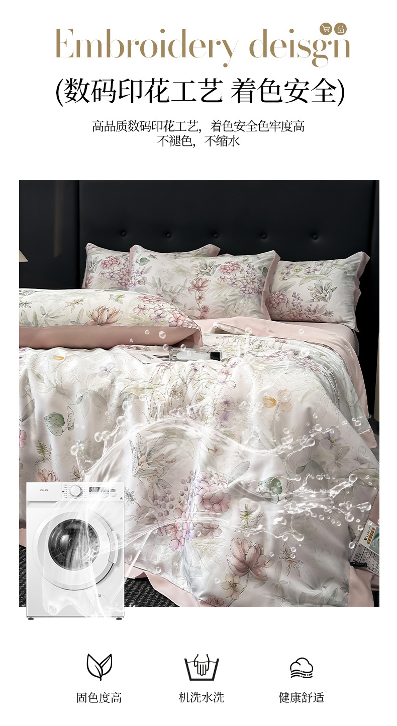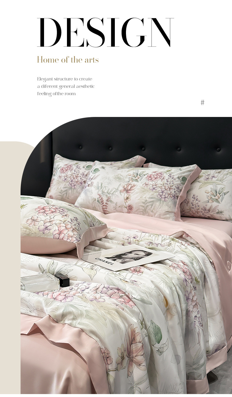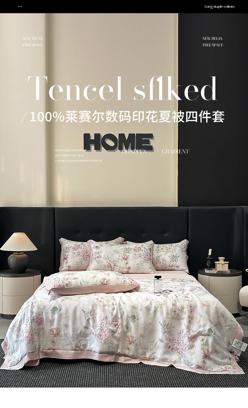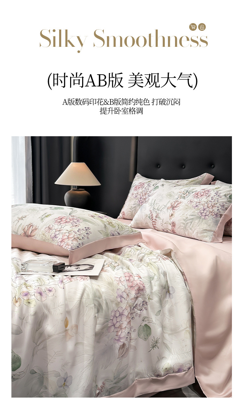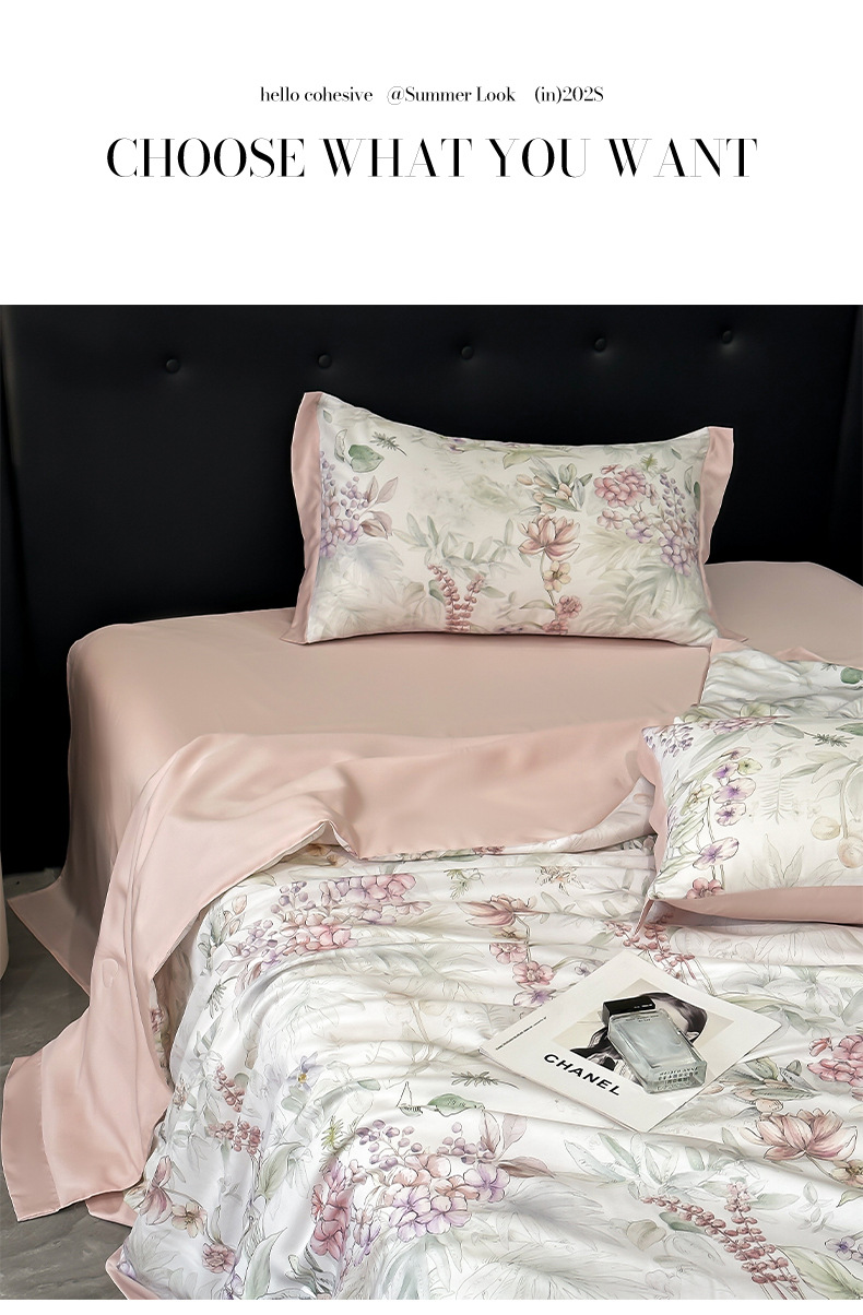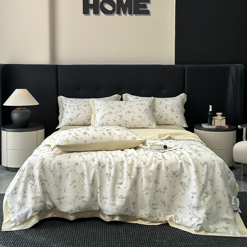 가벼운 럭셔리 텐셀 여름 퀼트 아이스 실크 여름 퀼트 여름 홈 기숙사 이불 인쇄 여름 이불 4 피스 세트 에어컨 퀼트스토어 가기