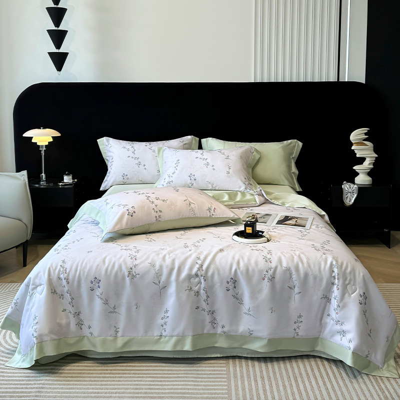 가벼운 럭셔리 텐셀 여름 퀼트 아이스 실크 여름 퀼트 여름 홈 기숙사 이불 인쇄 여름 이불 4 피스 세트 에어컨 퀼트