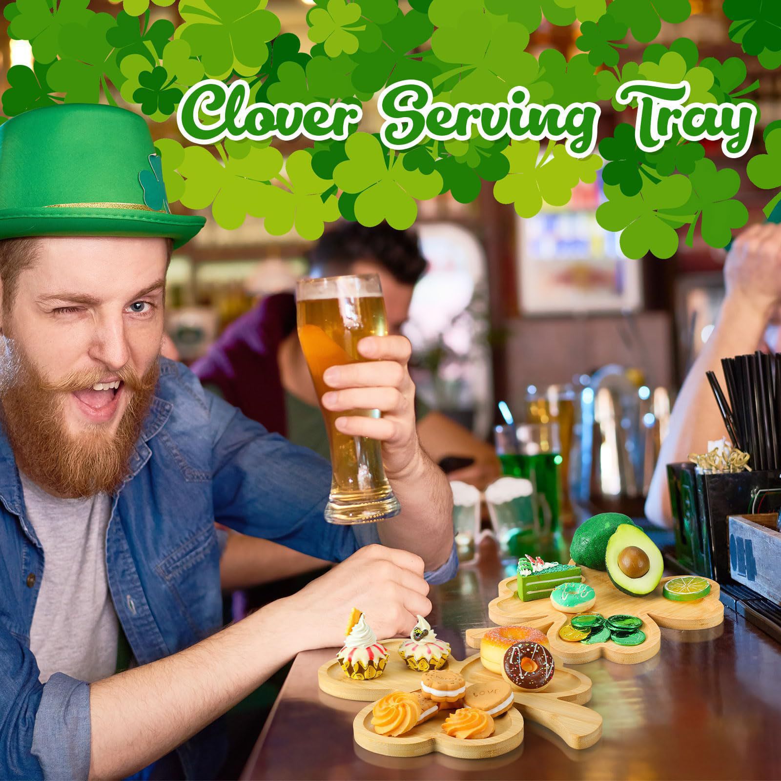 단단한 나무 클로버 트레이 홈 거실 레스토랑 서빙 트레이 클로버 모양의 전채 트레이 서빙 나무 트레이