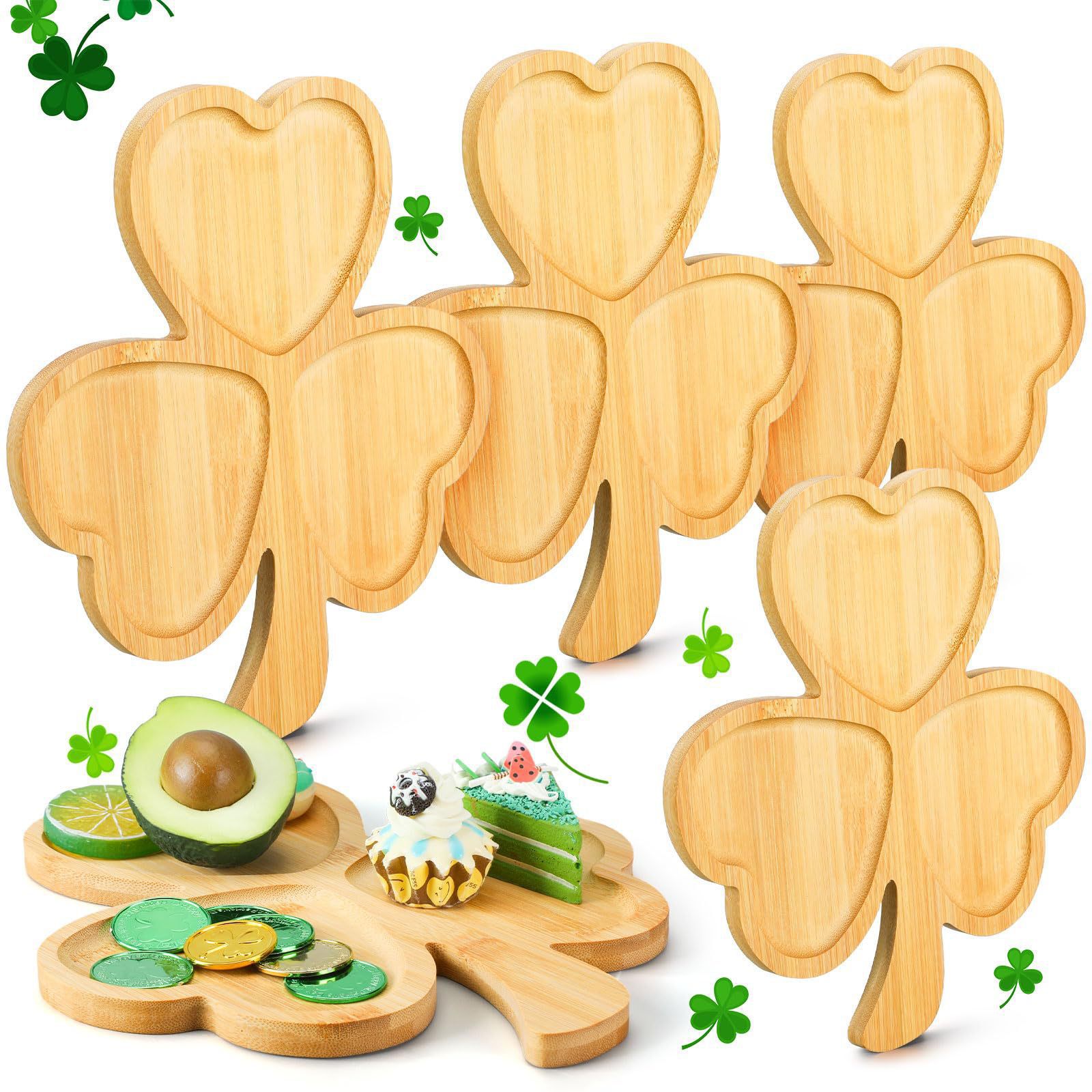 단단한 나무 클로버 트레이 홈 거실 레스토랑 서빙 트레이 클로버 모양의 전채 트레이 서빙 나무 트레이스토어 가기