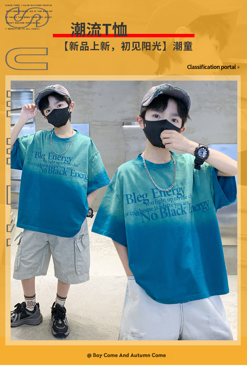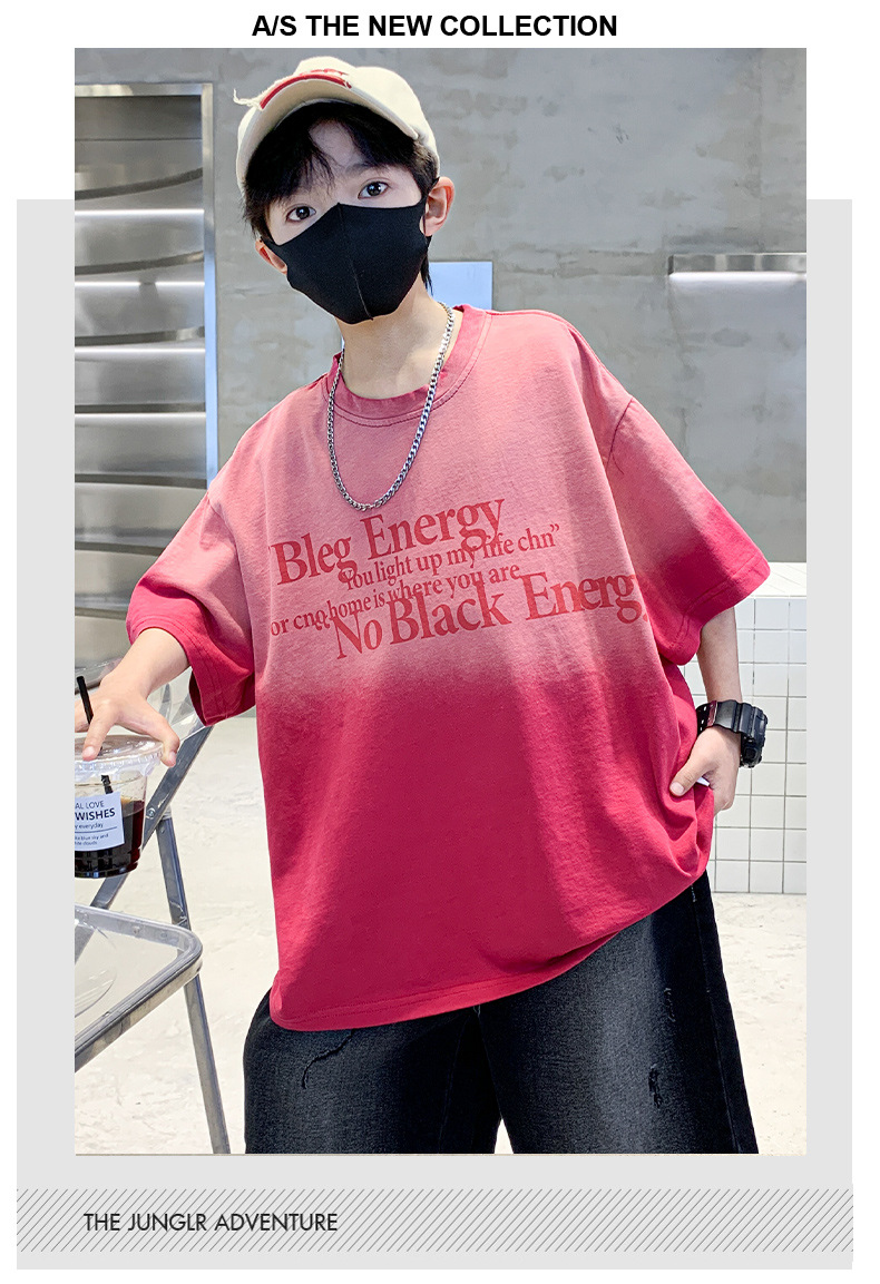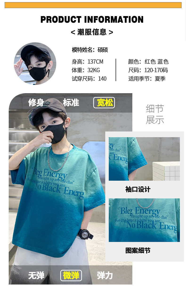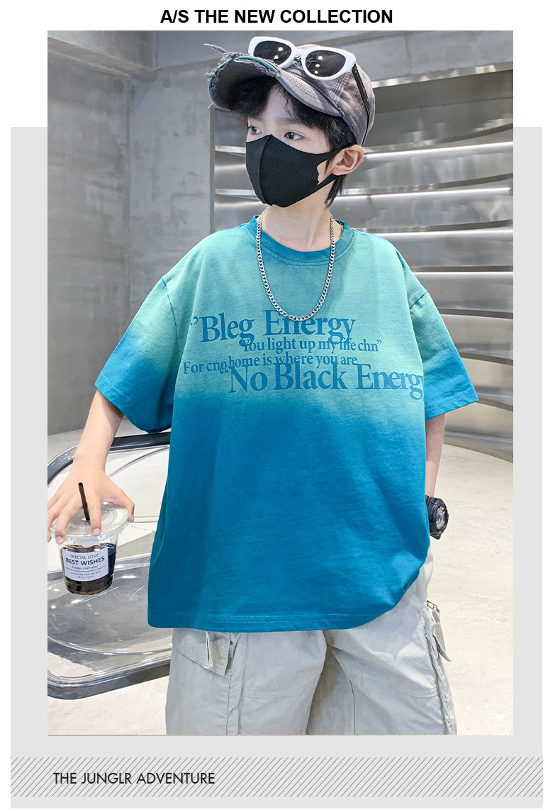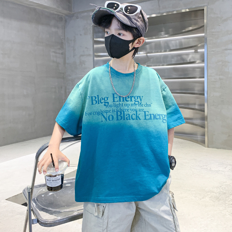 소년 그라디언트 티셔츠 여름 새로운 2025 여름 반 소매 큰 어린이 여름 잘 생긴 트렌디 t 도매 소년스토어 가기