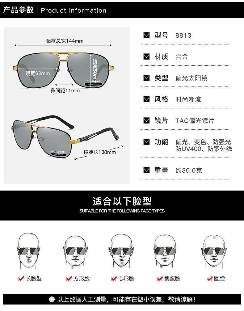 • 흑백 실버 프레임 [HD 편광 황록색 필름] 주야간 사용 가능