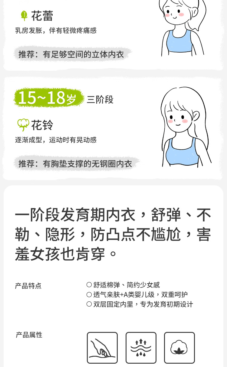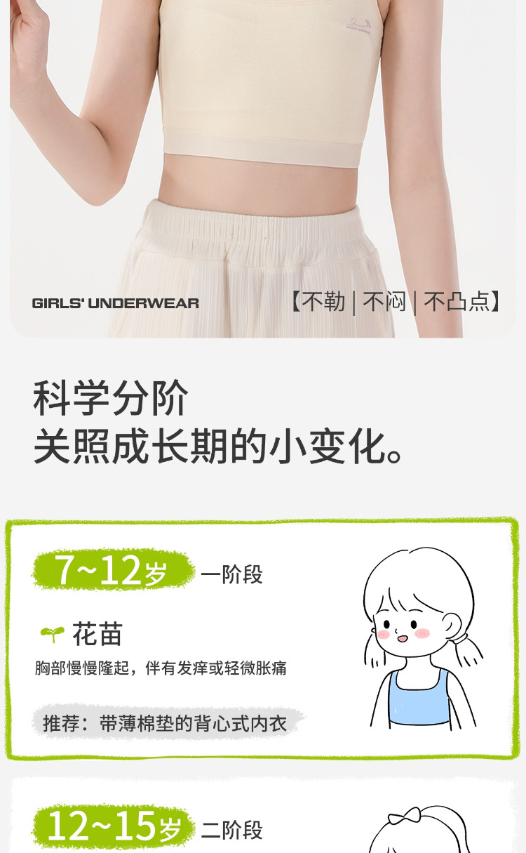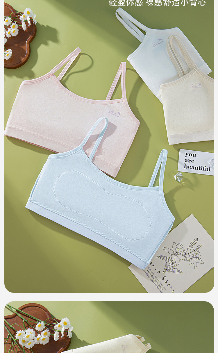 어린이 속옷 개발 초등 학교 학생 7-12 세 소녀를위한 안티 범프 통기성 코튼 슬링 스테이지 1 단계 추적없는 조끼