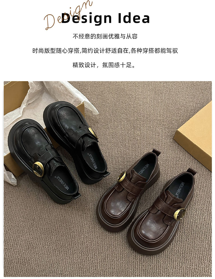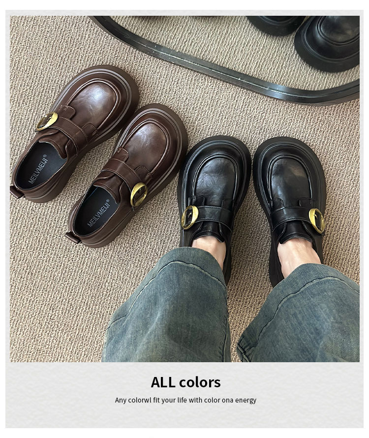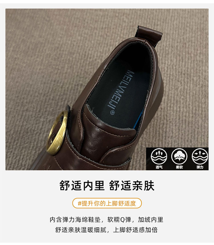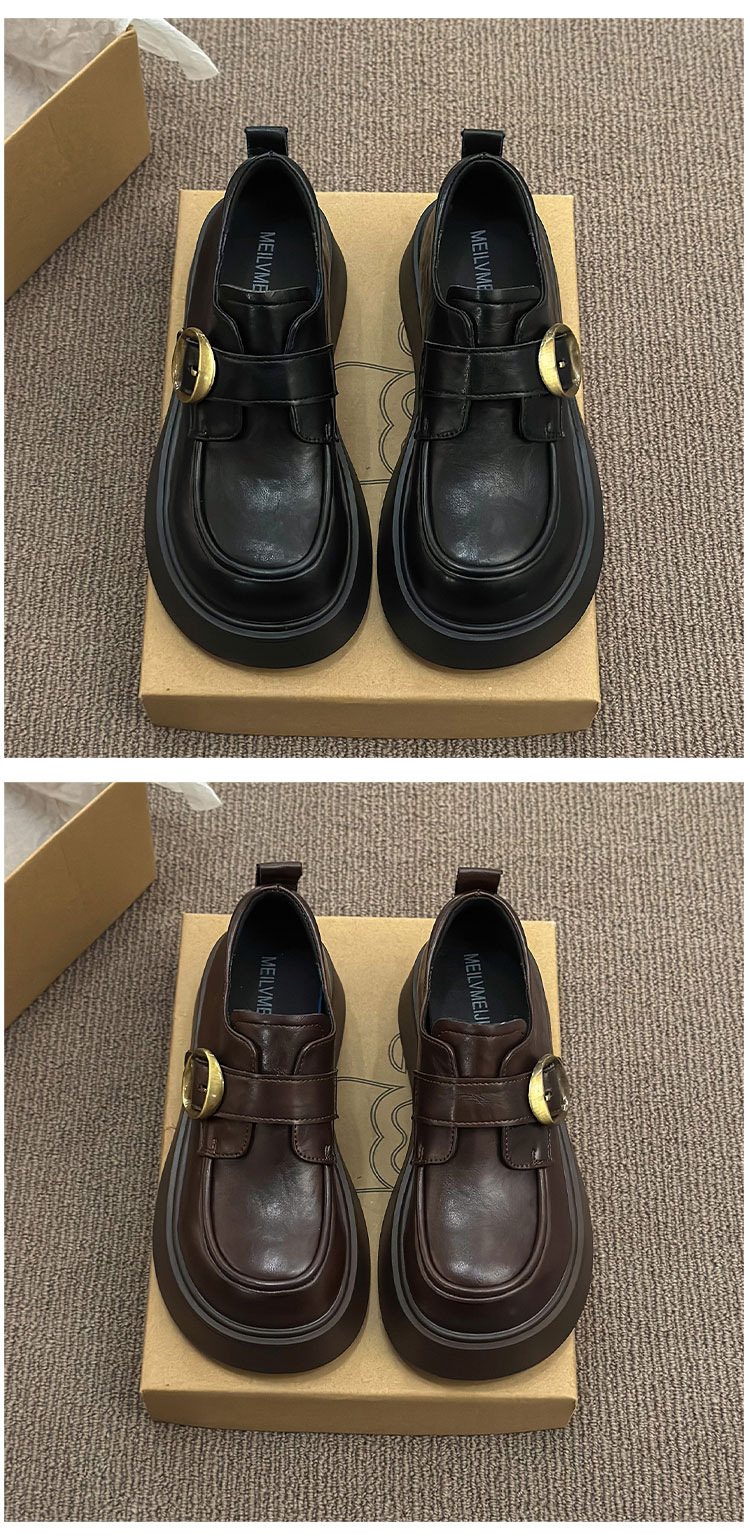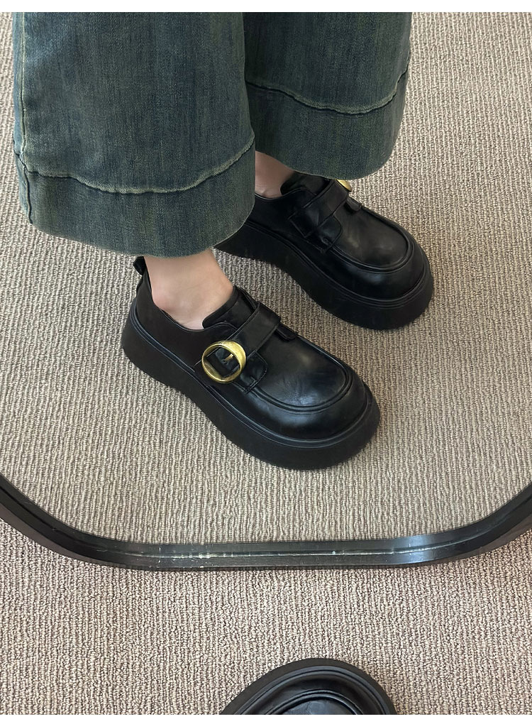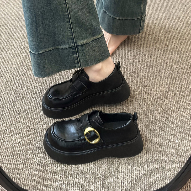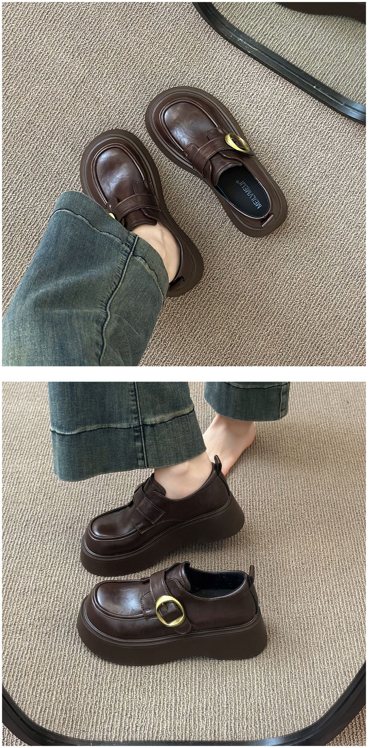 두꺼운 밑창의 작은 가죽 신발 여성 신발 2025 봄 새로운 영국 다목적 로퍼 복고풍 갈색 버클 신발스토어 가기