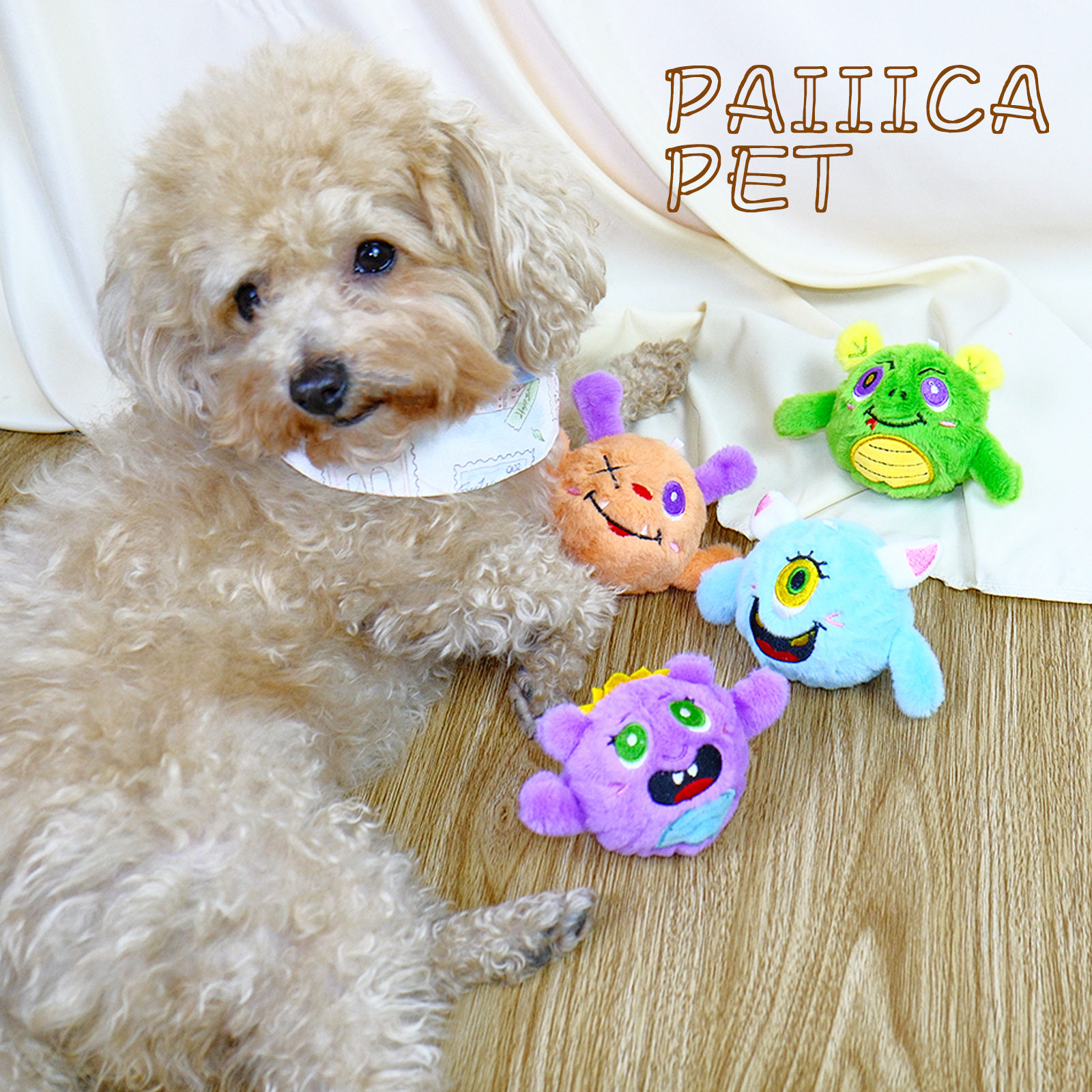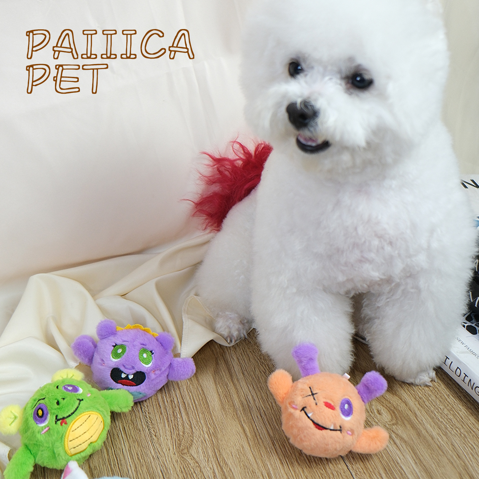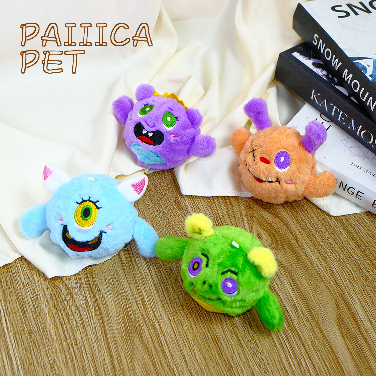 애완 동물 봉제 스팅 볼 장난감 귀여운 작은 괴물 큰 눈 물린 대화 형 자기 안녕 개 장난감 압축 방지 던지기