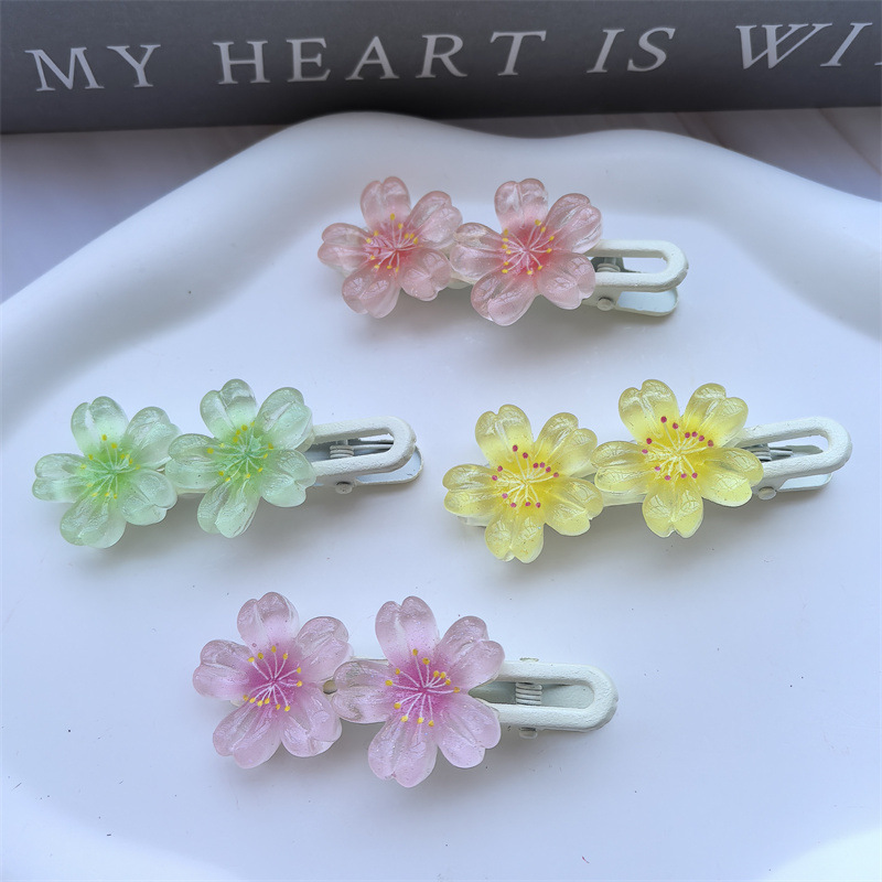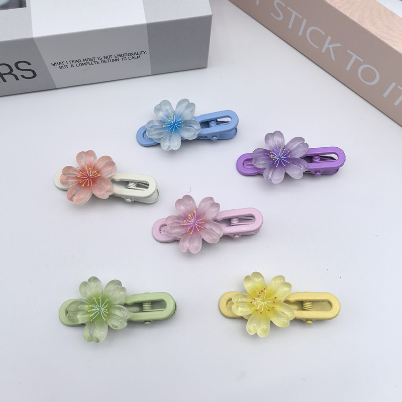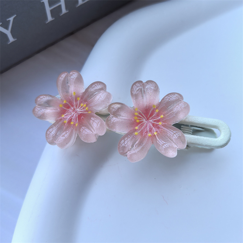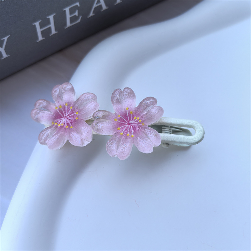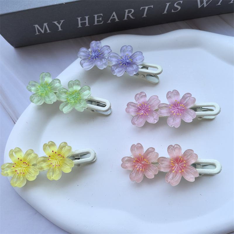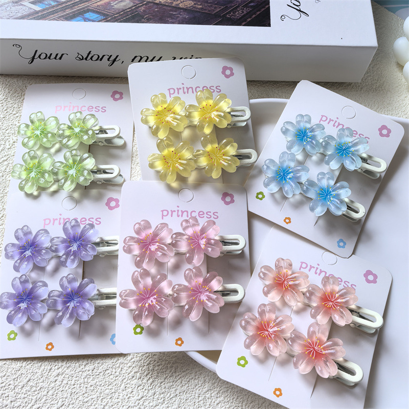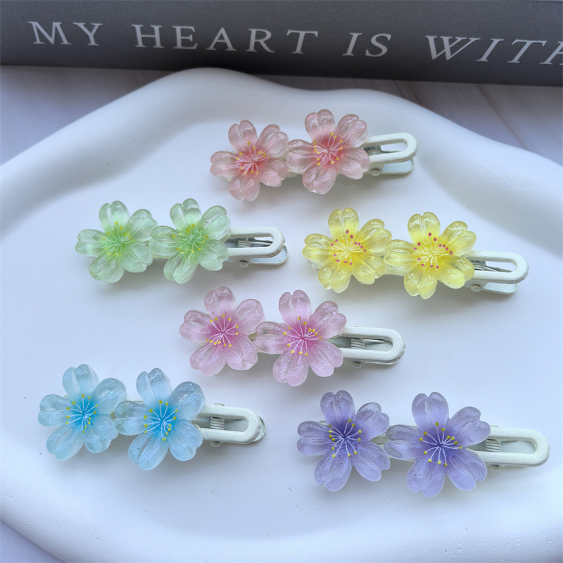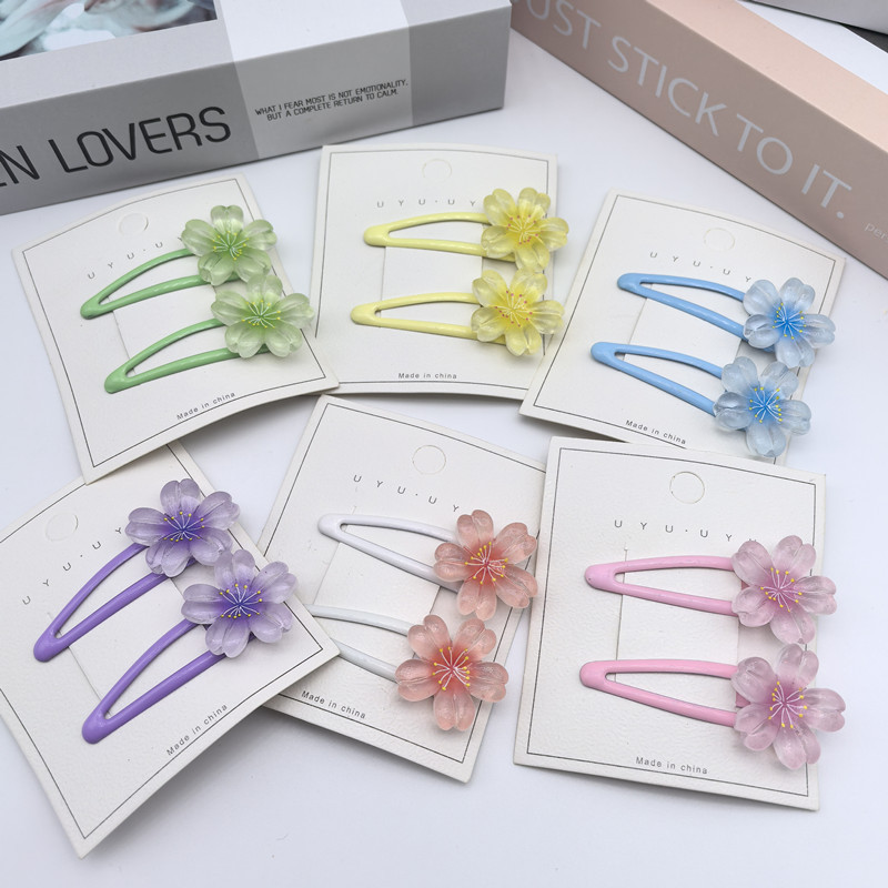 달콤한 캔디 컬러 벚꽃 헤어핀 어린이 얼음 얇은 플래시 꽃 귀여운 헤드웨어 작은 소녀 헤어 액세서리 학생 사이드 클립스토어 가기