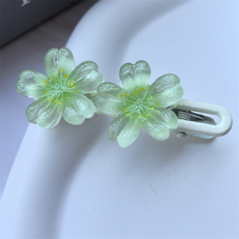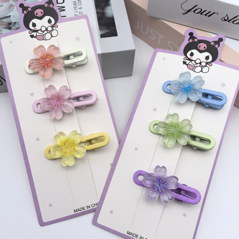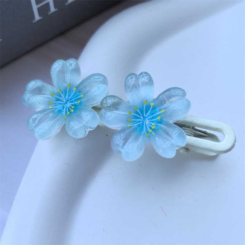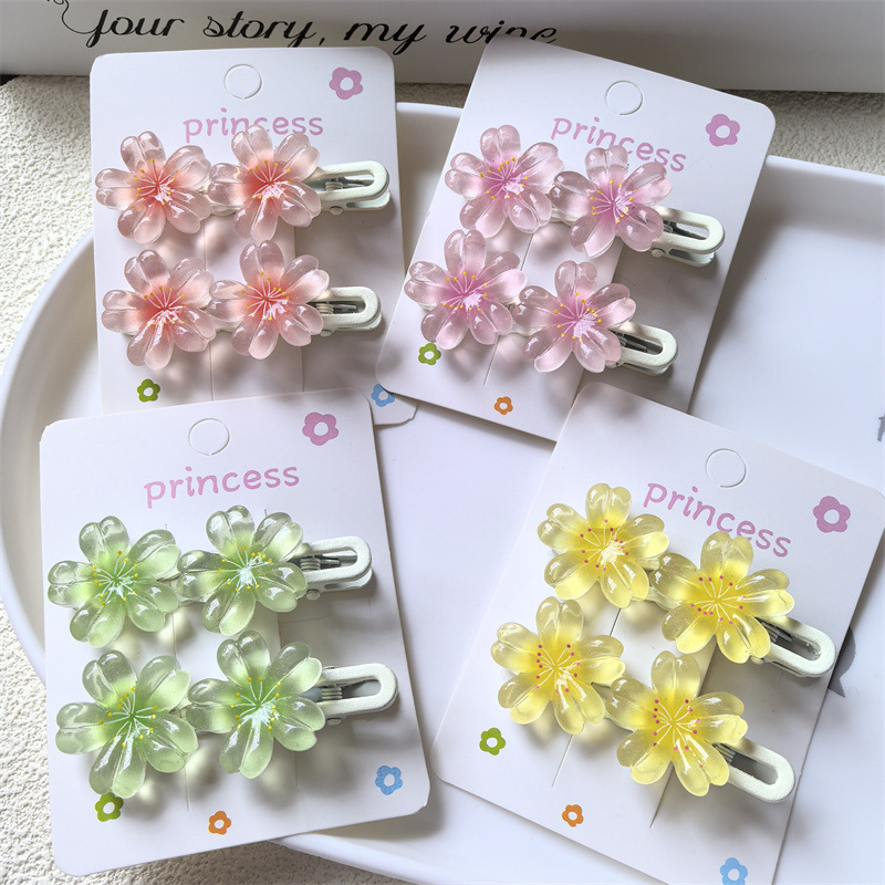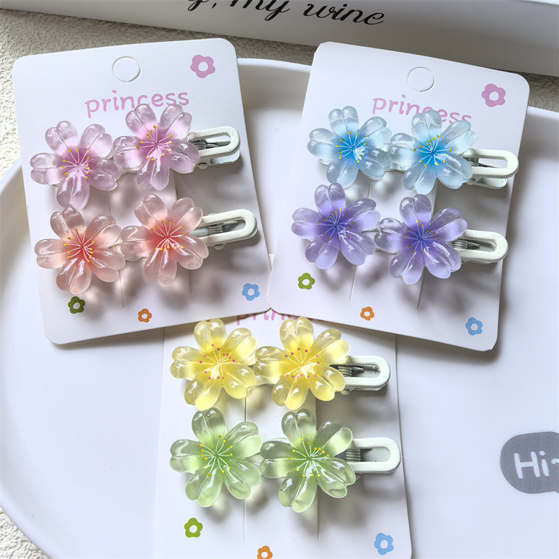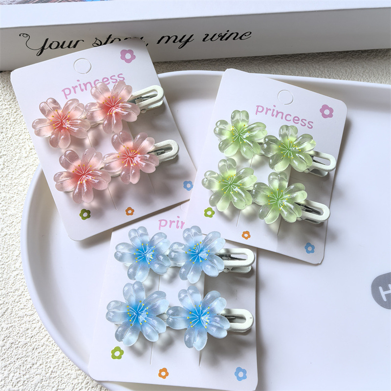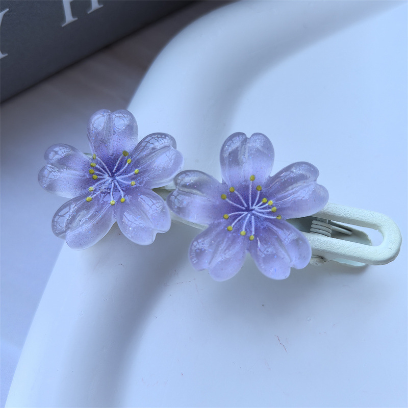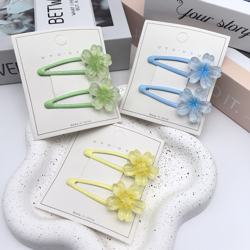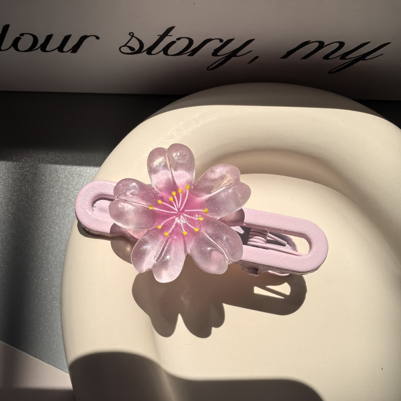달콤한 캔디 컬러 벚꽃 헤어핀 어린이 얼음 얇은 플래시 꽃 귀여운 헤드웨어 작은 소녀 헤어 액세서리 학생 사이드 클립스토어 가기