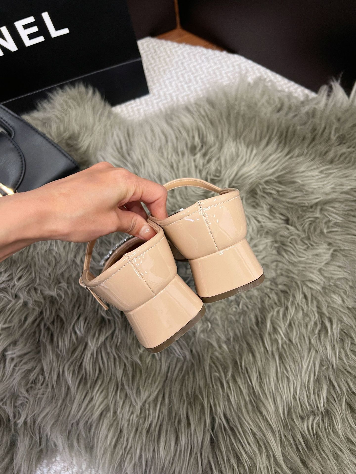 7cm 라인스톤 스퀘어 버클 바오터우 하프 슬리퍼 여성 여름 아우터웨어 2025 새로운 고급 코어스 힐 메리 제인 슬리퍼 증가스토어 가기