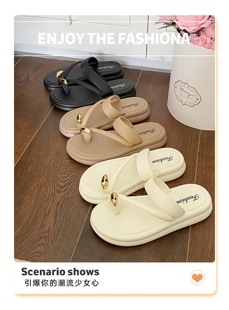 발가락 슬리퍼 여성의 여름 외부 착용 2024 새로운 패션 두꺼운 바닥 프랑스 스타일 캐주얼 클립 레그 비치 샌들 스커트