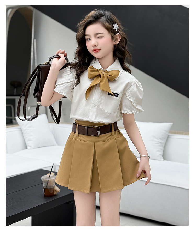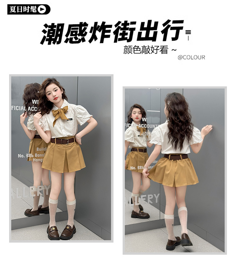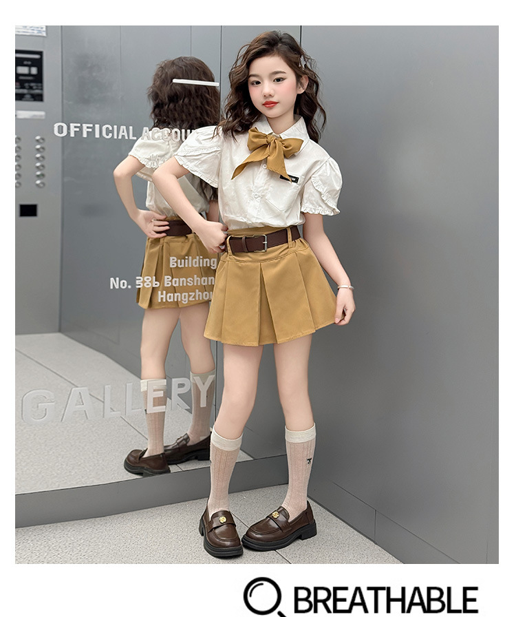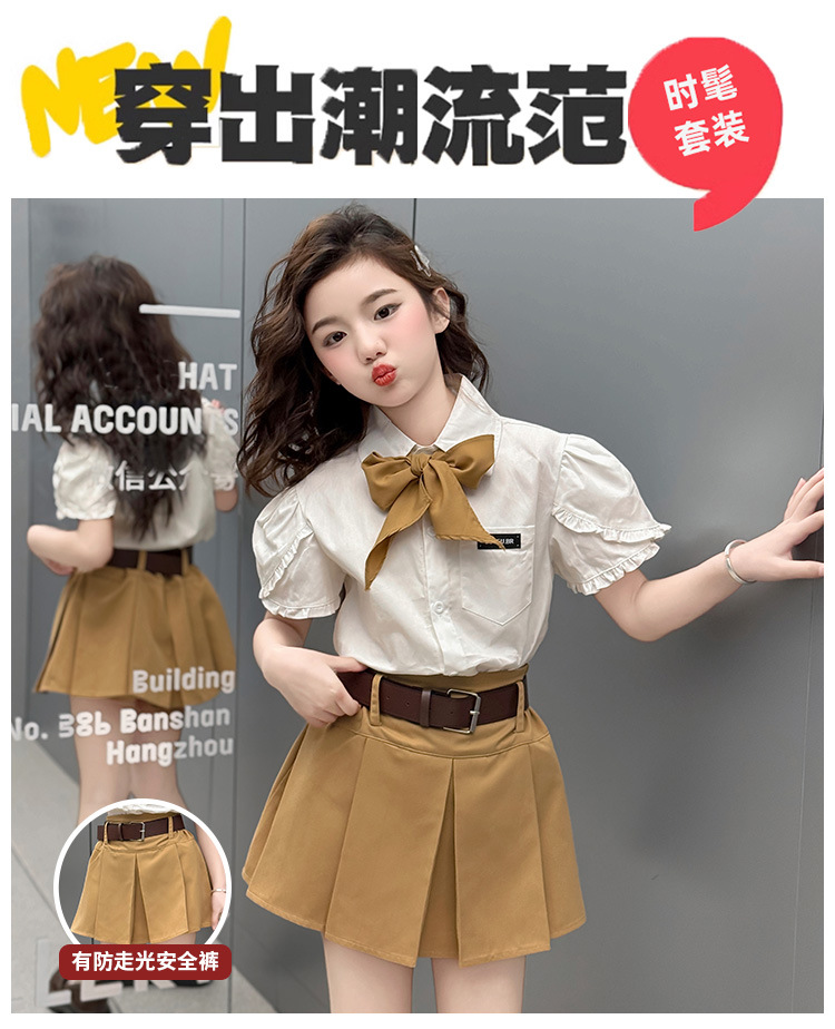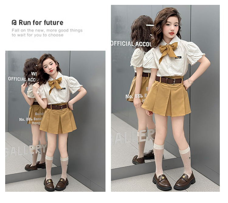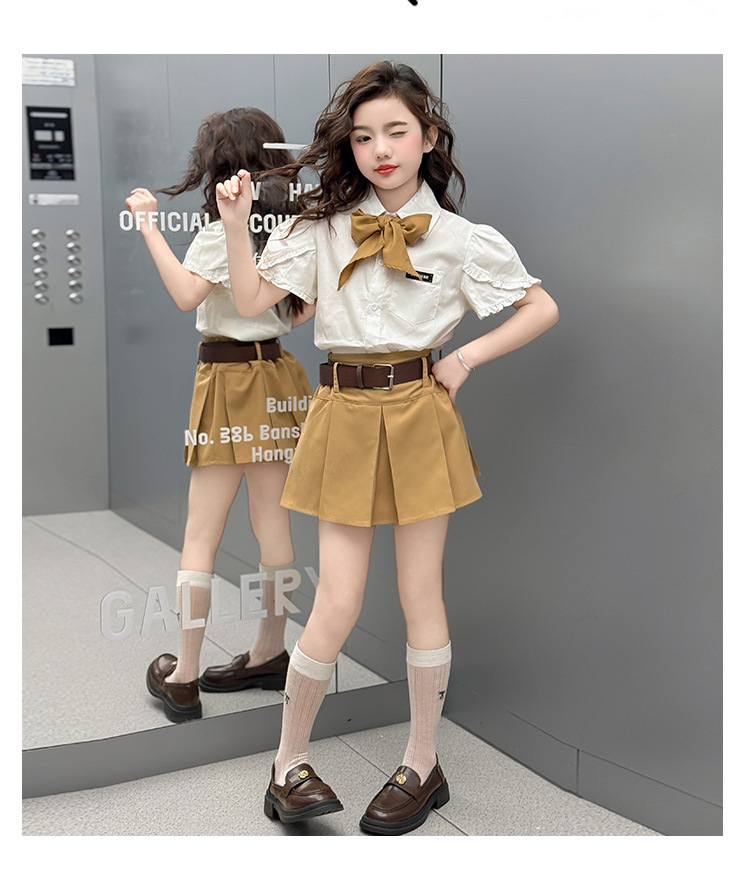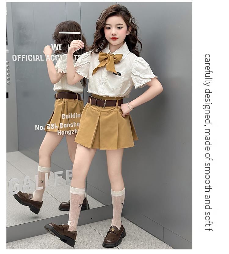 여자 여름 셔츠 세트 2025 새로운 여름 어린이 반팔 여름 패션 연예인 JK 주름 치마스토어 가기