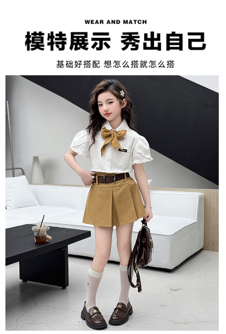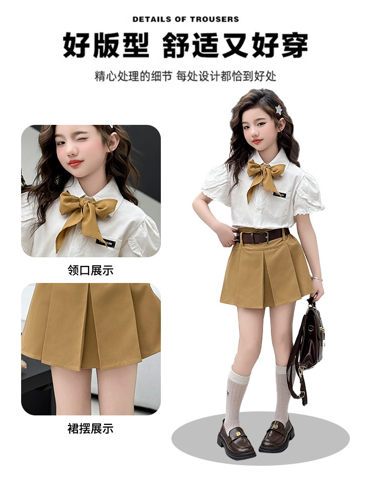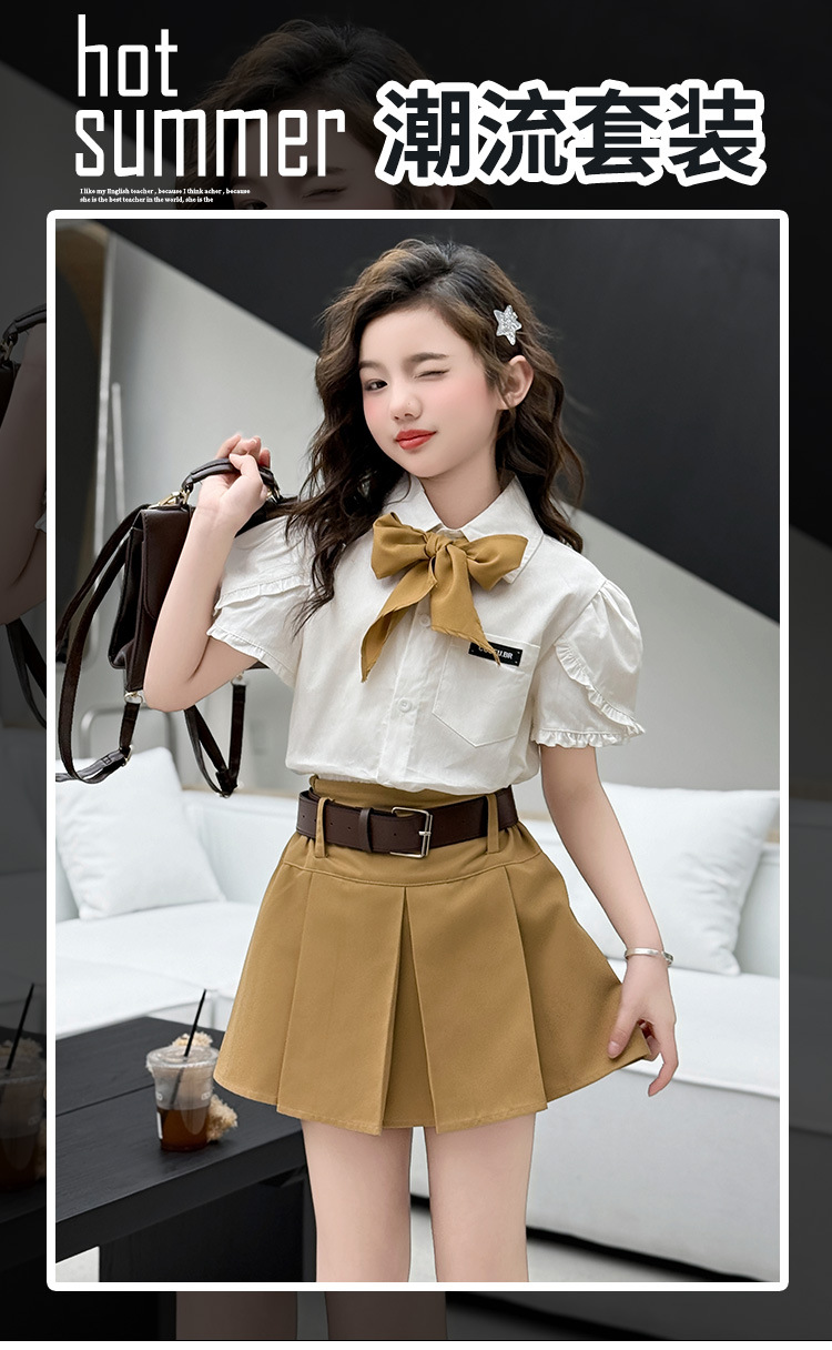 여자 여름 셔츠 세트 2025 새로운 여름 어린이 반팔 여름 패션 연예인 JK 주름 치마