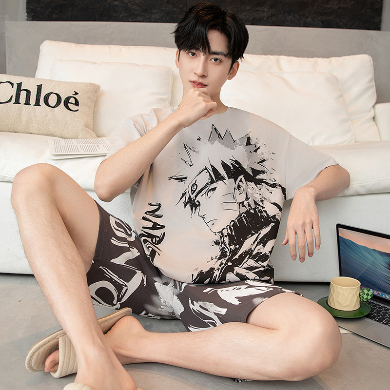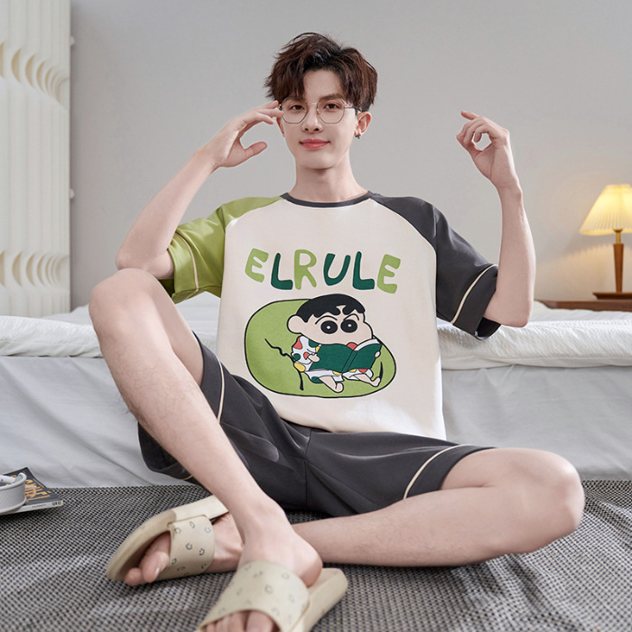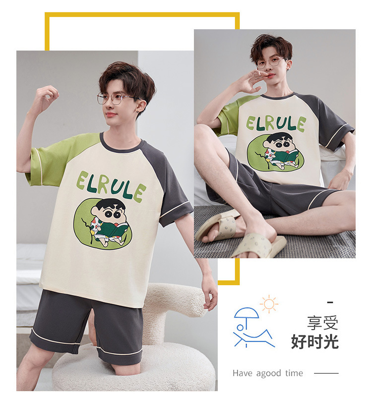 만화 크레용 샤오신 순면 파자마 남자 여름 반팔 반바지 10 대 플러스 사이즈 100.00kg 홈 의류 세트스토어 가기