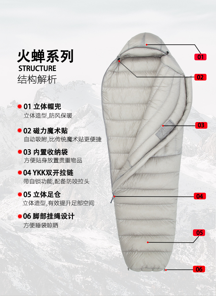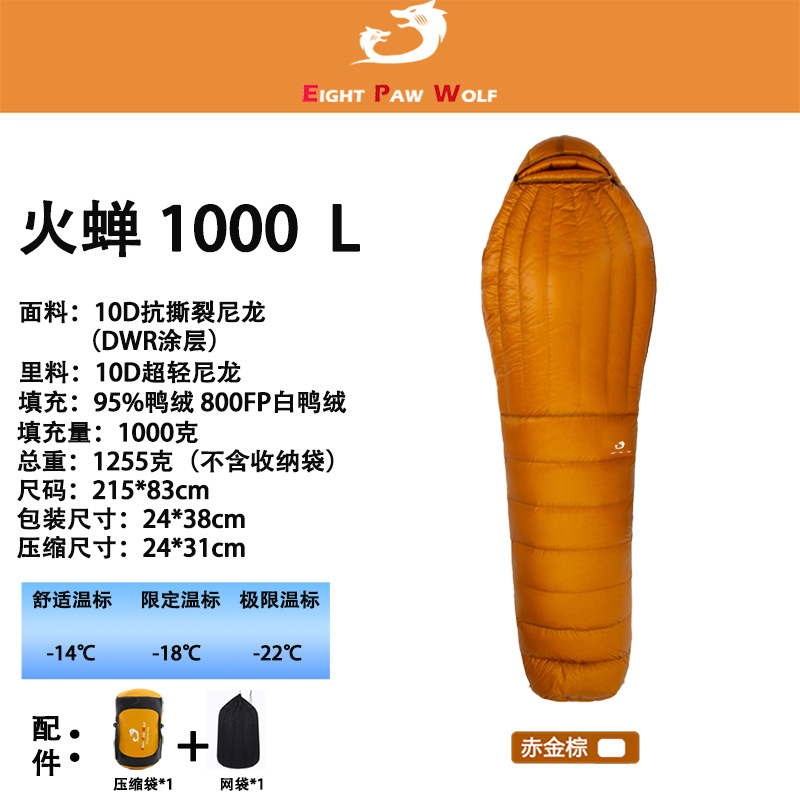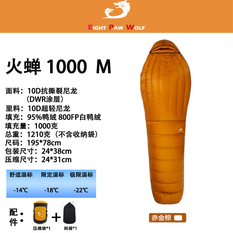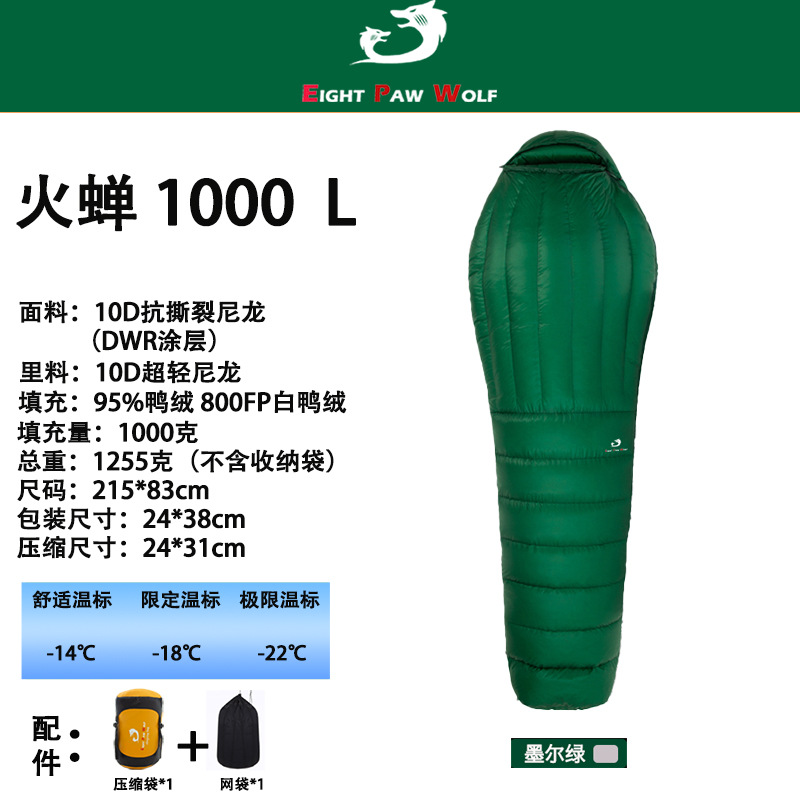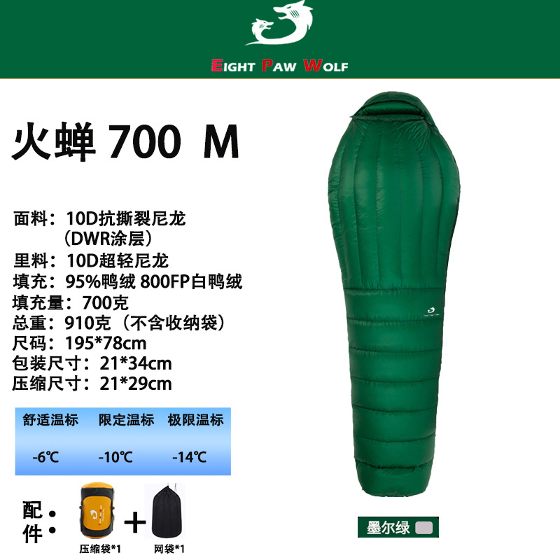 8 PAW WOLF 캠핑 슬리핑 백 800 캐노피 10D 울트라 라이트 슬리핑 백 두꺼운 미라 슬리핑 백