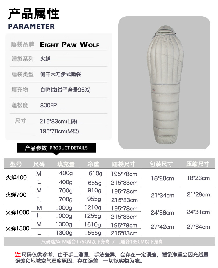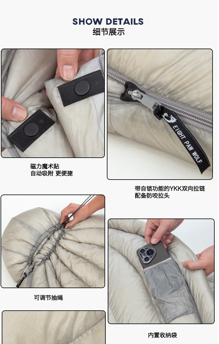 8 PAW WOLF 캠핑 슬리핑 백 800 캐노피 10D 울트라 라이트 슬리핑 백 두꺼운 미라 슬리핑 백스토어 가기