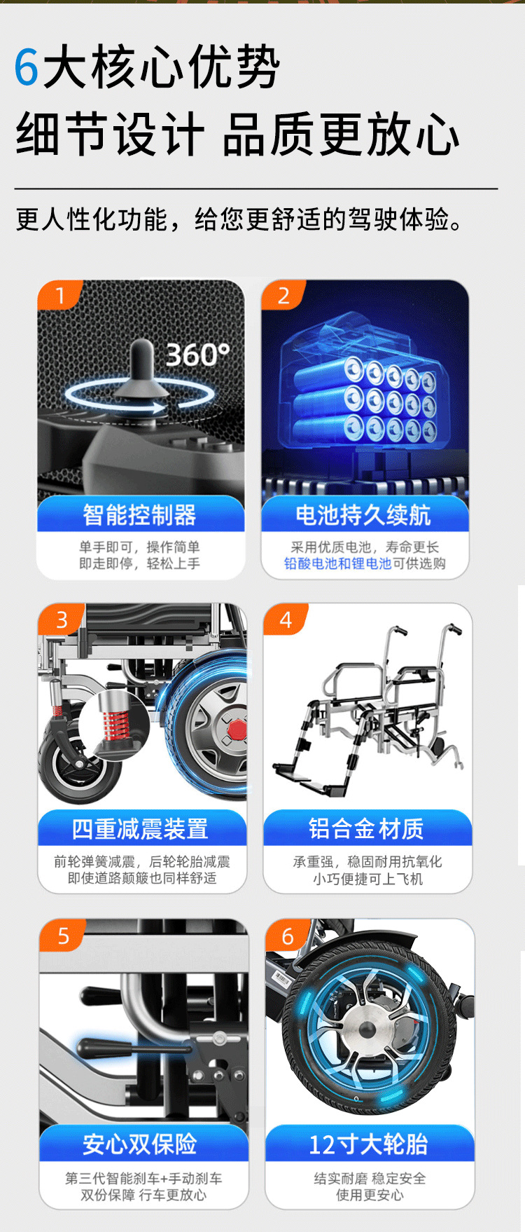 요하 경량 알루미늄 합금 전기 휠체어 베어링 150kg 전자기 브레이크 시스템 듀얼 모터 지능형스토어 가기