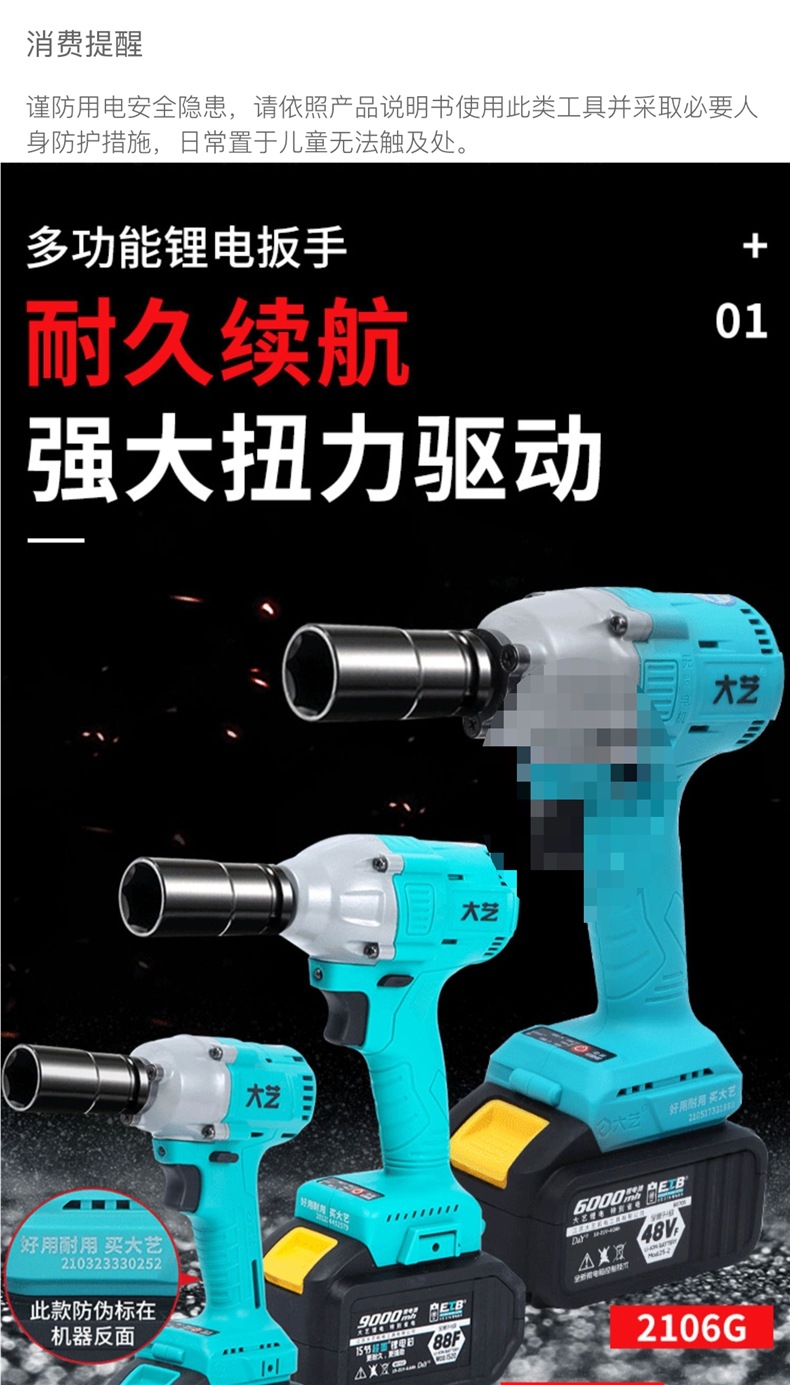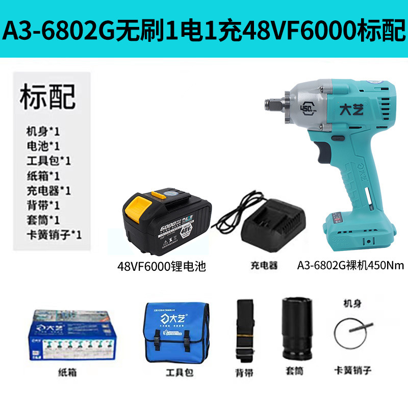 • A3-6802G 높은 토크 450Nm, 배터리 1개 및 충전 48VF6000 패키지 1개