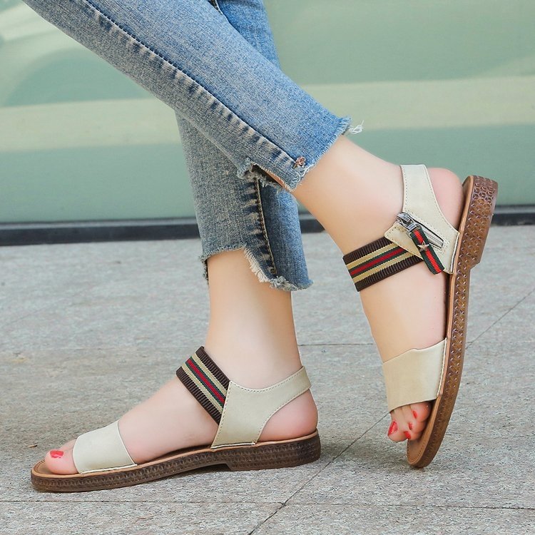 여성용 원 스트랩 샌들 2025 여름 신작 로우 힐 사이드 지퍼 로마 신발 여성용 샌들스토어 가기