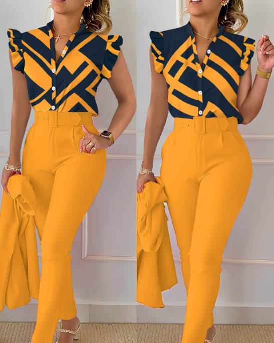 새로운 2024 Amazon 독립 스테이션 패션 캐주얼 프릴 슬리브 조끼 여성용 투피스 슈트스토어 가기