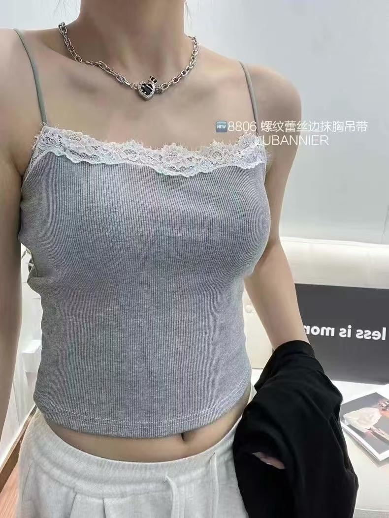 8806 뉴 클라우드 센스 퓨어 러스트 스타일 캐미솔 섹시 레이스 원 숄더 아름다운 백 슬림 탑 봄 여름스토어 가기