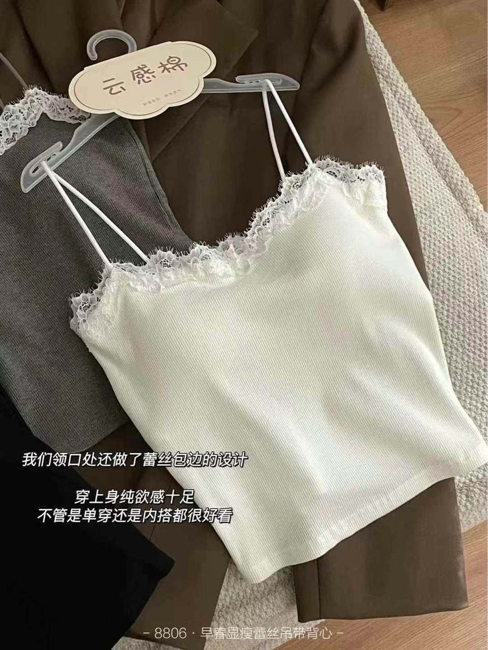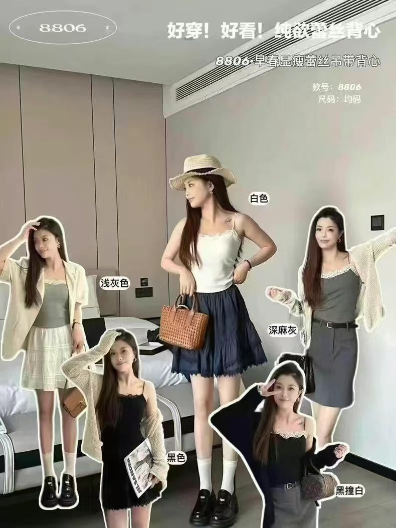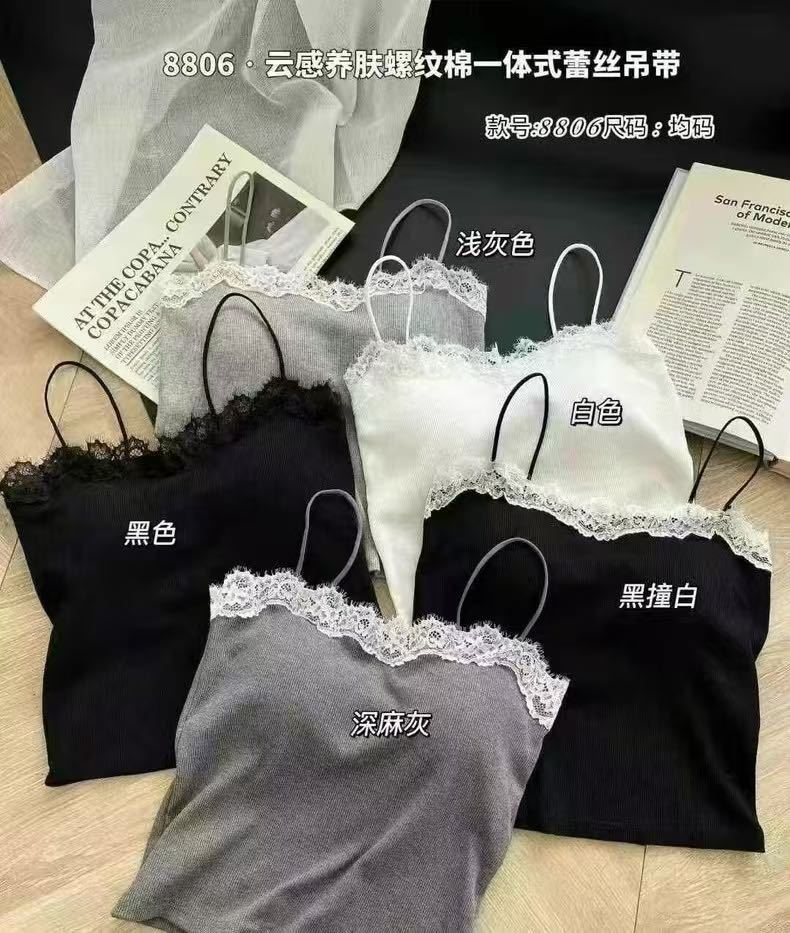 8806 뉴 클라우드 센스 퓨어 러스트 스타일 캐미솔 섹시 레이스 원 숄더 아름다운 백 슬림 탑 봄 여름