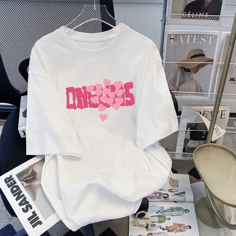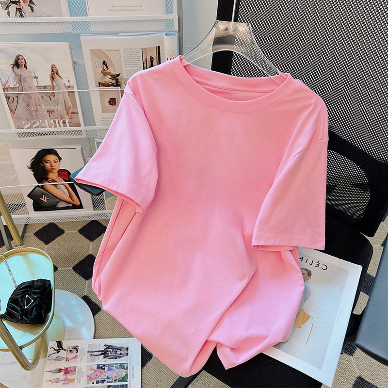 핑크 코튼 반팔 티셔츠 여자 여름 2025 새로운 유럽 플러스 사이즈 셔츠 어깨 셔츠 반소매 탑