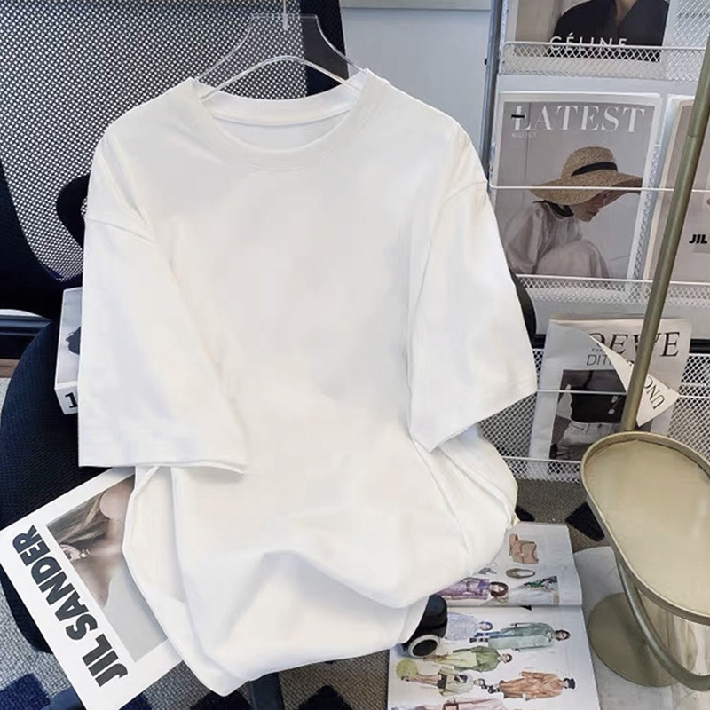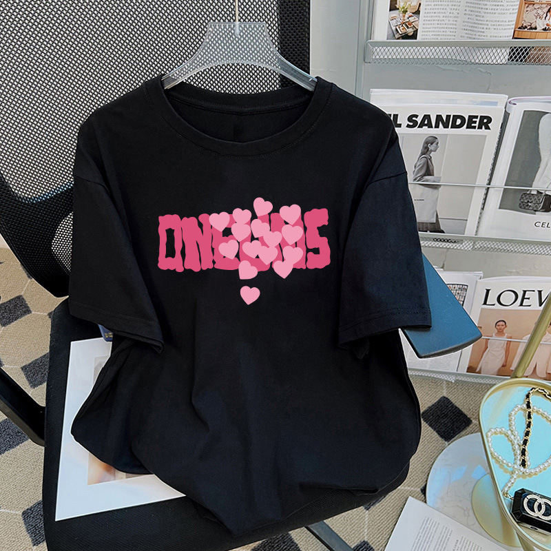 핑크 코튼 반팔 티셔츠 여자 여름 2025 새로운 유럽 플러스 사이즈 셔츠 어깨 셔츠 반소매 탑스토어 가기