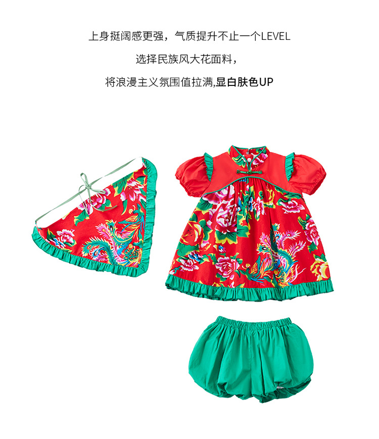 여자 여름 복고풍 북동부 꽃무늬 양복 2024 새로운 얇은 어린이 스타일 인터넷 연예인 꽃무늬 바지 투피스 세트