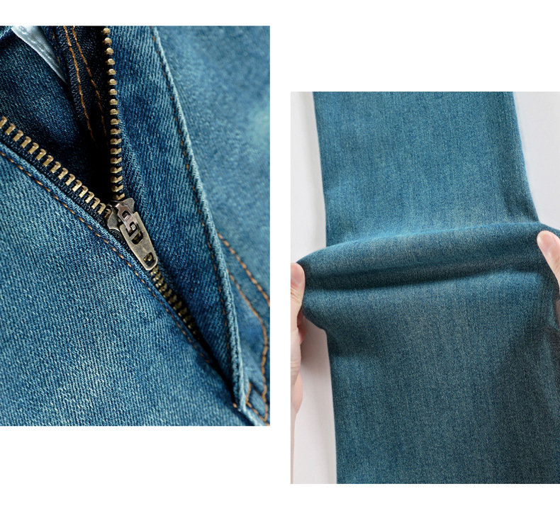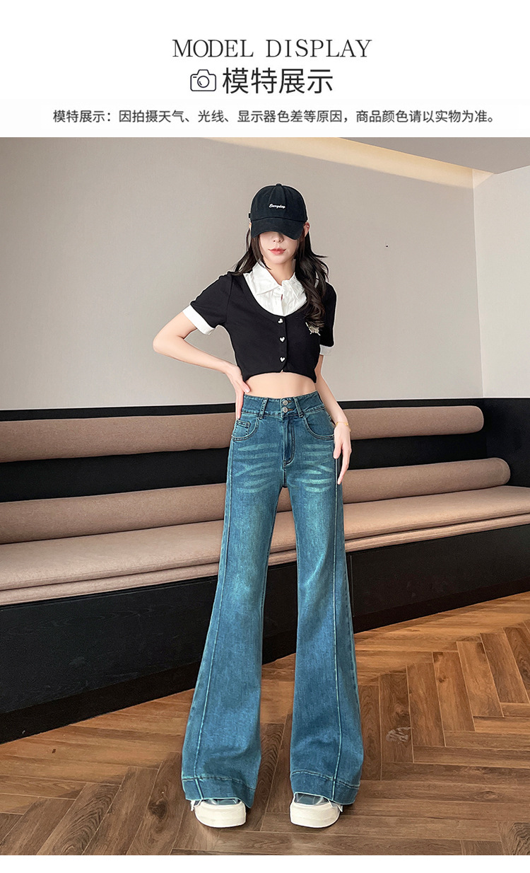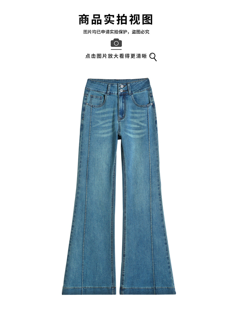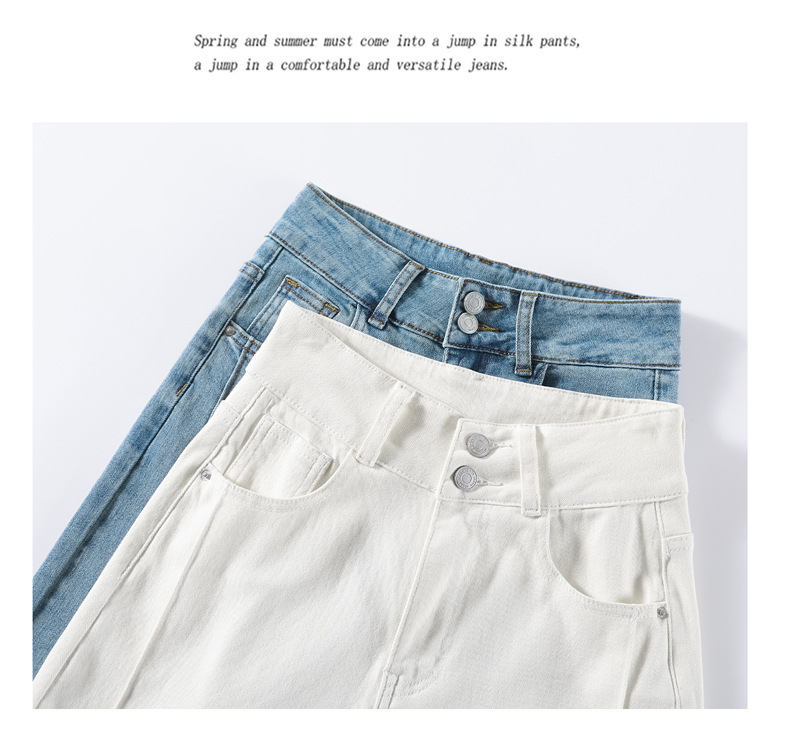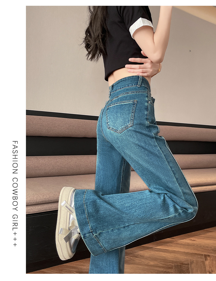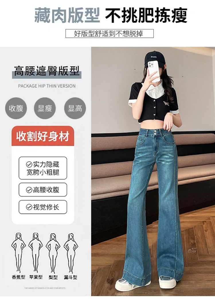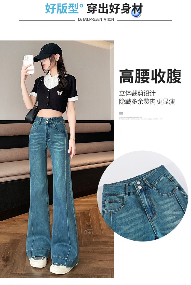 라이트 블루 마이크로 라 청바지 여성의 봄과 가을 새로운 높은 허리 탄성 느슨한 슬림 넓은 다리 바지스토어 가기