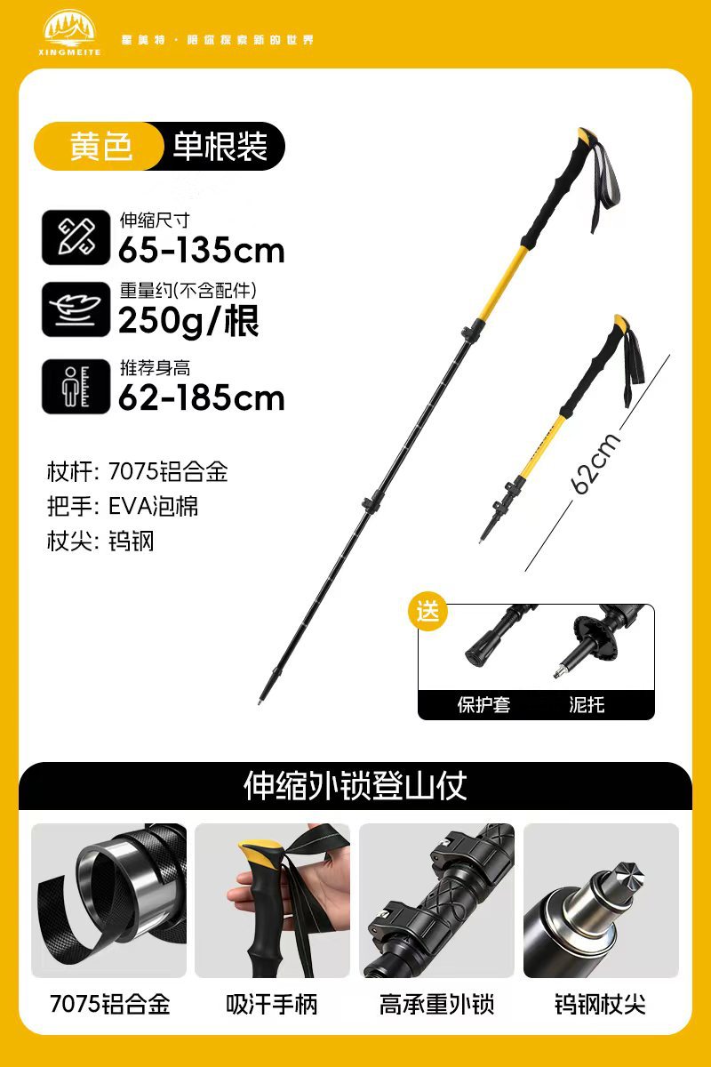 • 텔레스코픽 외부 잠금 장치 7075 알루미늄 합금/편안한 EVA 폼 그립 아름다운 노란색