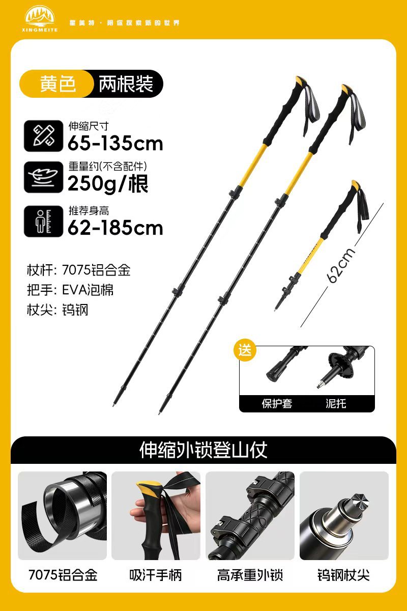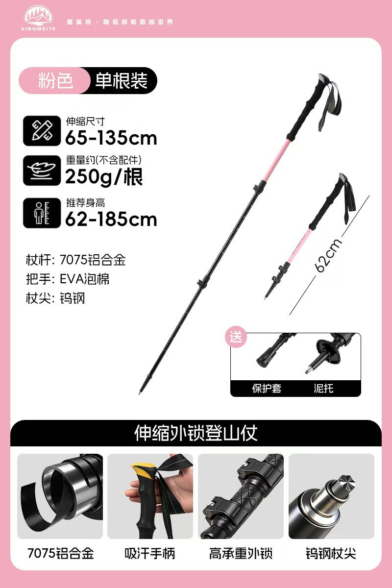 등산 스틱 전문 야외 접는 등반 스틱 탄소 초경량 망원경 하이킹 장비 미끄럼 목발 스키