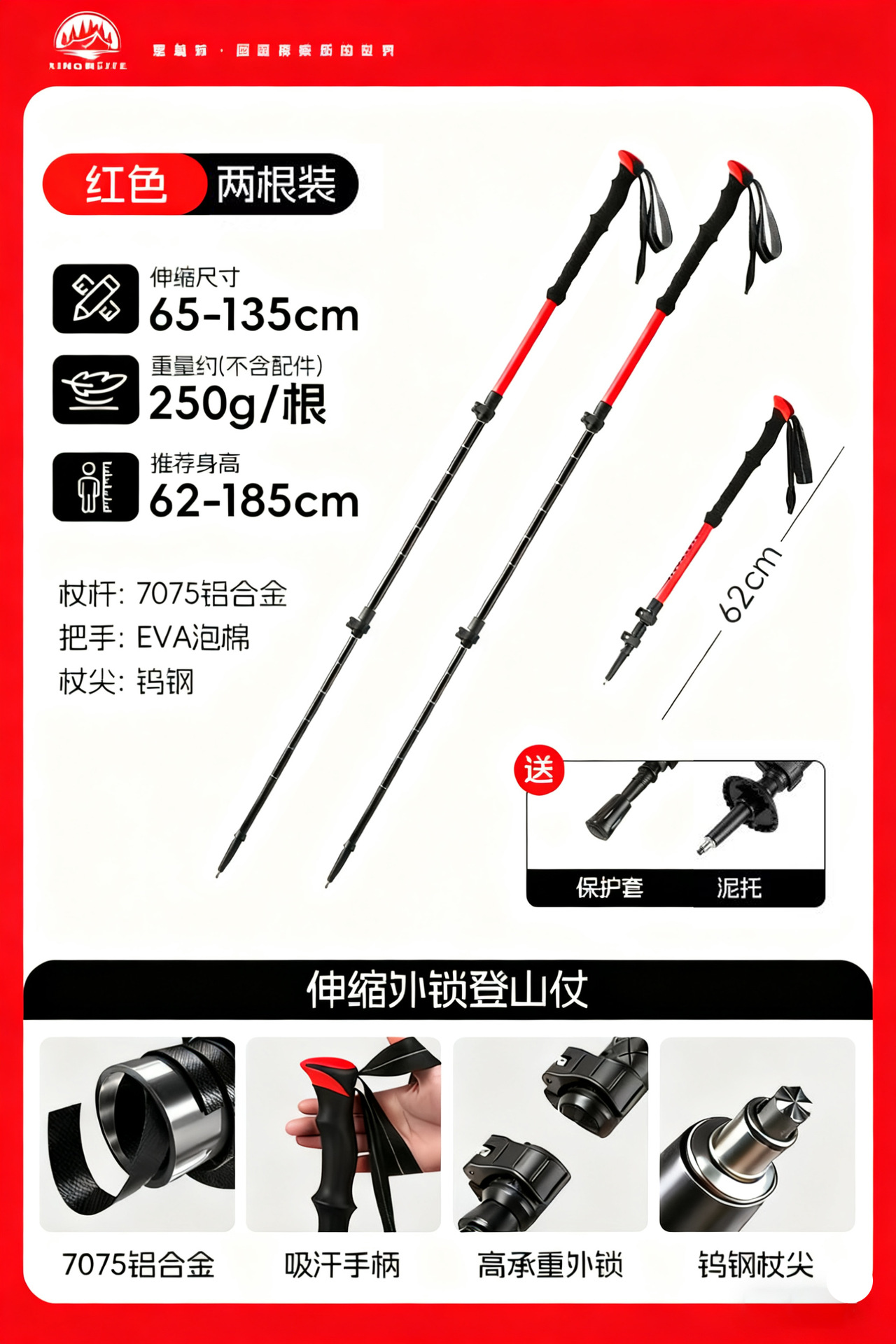 • 텔레스코픽 외부 잠금 장치 7075 알루미늄 합금/편안한 EVA 폼 그립 중국 빨간색