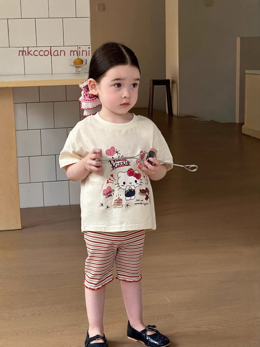Mkccolan 미니 여름 소녀 아기 소녀 만화 티셔츠 줄무늬 레깅스 2 피스 1707