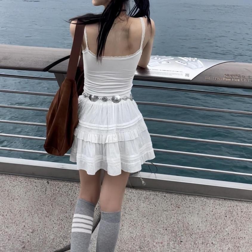 가슴 패드가 있는 여성용 순수한 욕망 버튼 레이스 화이트 캐미솔, 섹시한 아우터웨어, 슬림핏 하의 핫걸 탑스토어 가기