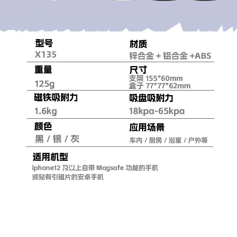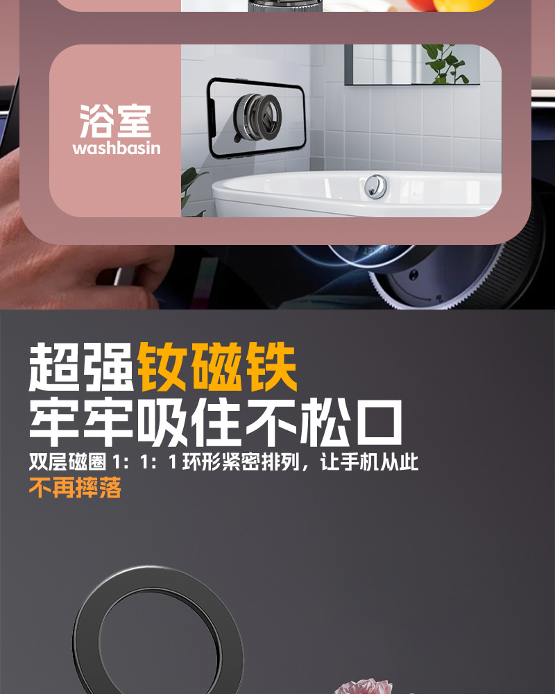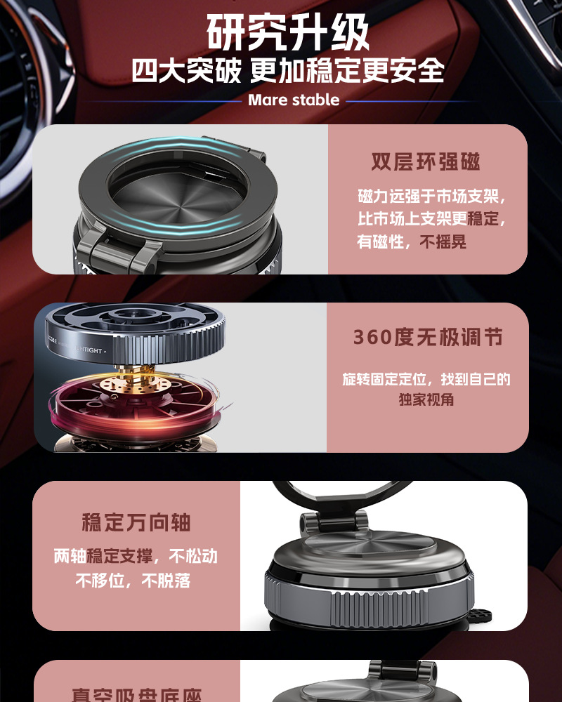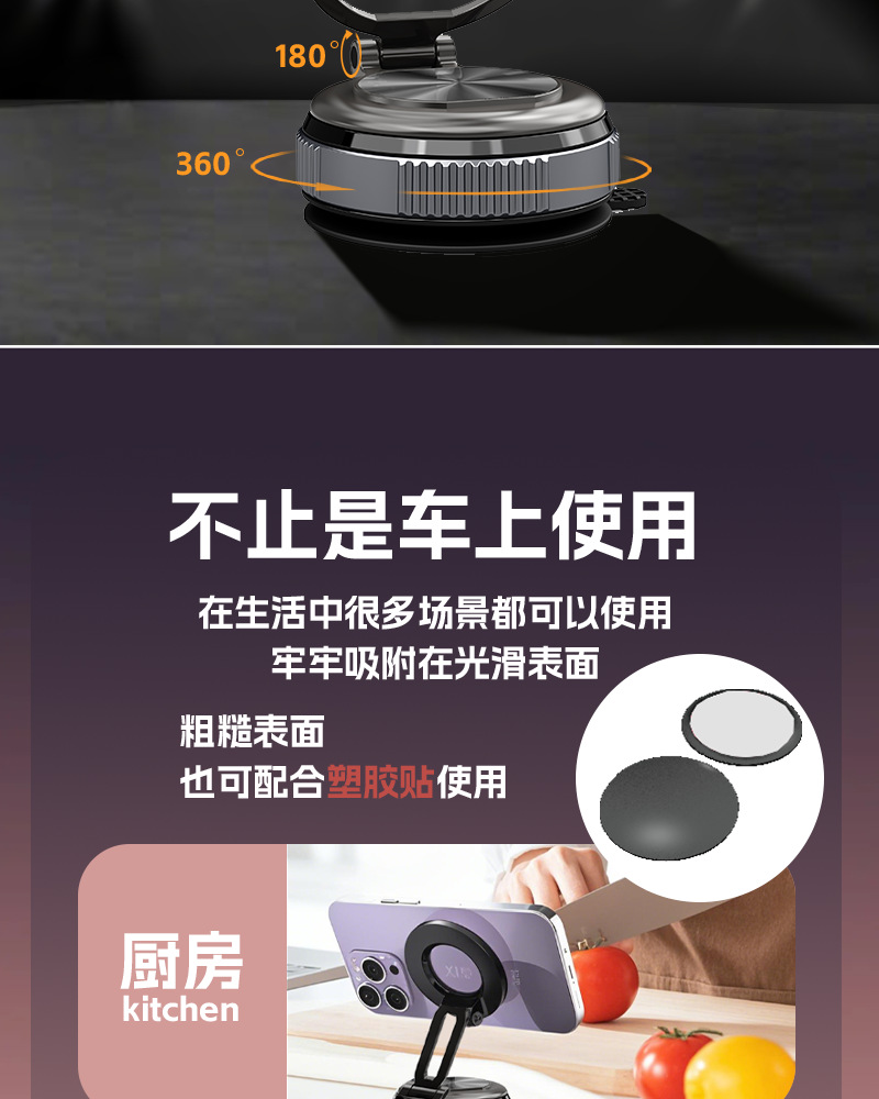 车上用品黑科技车载磁吸手机支架多功能折叠真空吸盘汽车导航支架