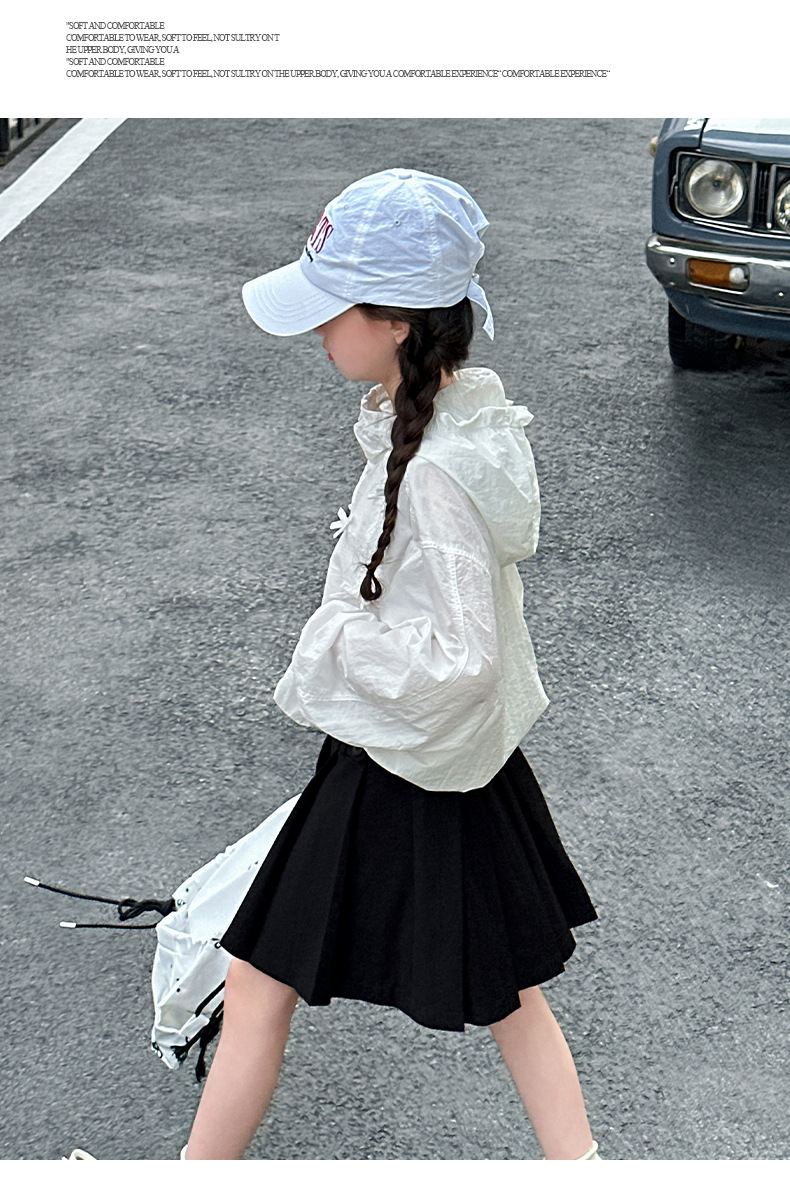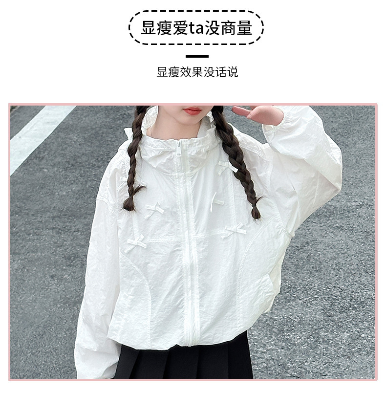 소녀 선스크린 의류 2025 새로운 어린이 세련 된 세련된 후드 자켓 소녀 여름 얇은 에어컨 의류 탑