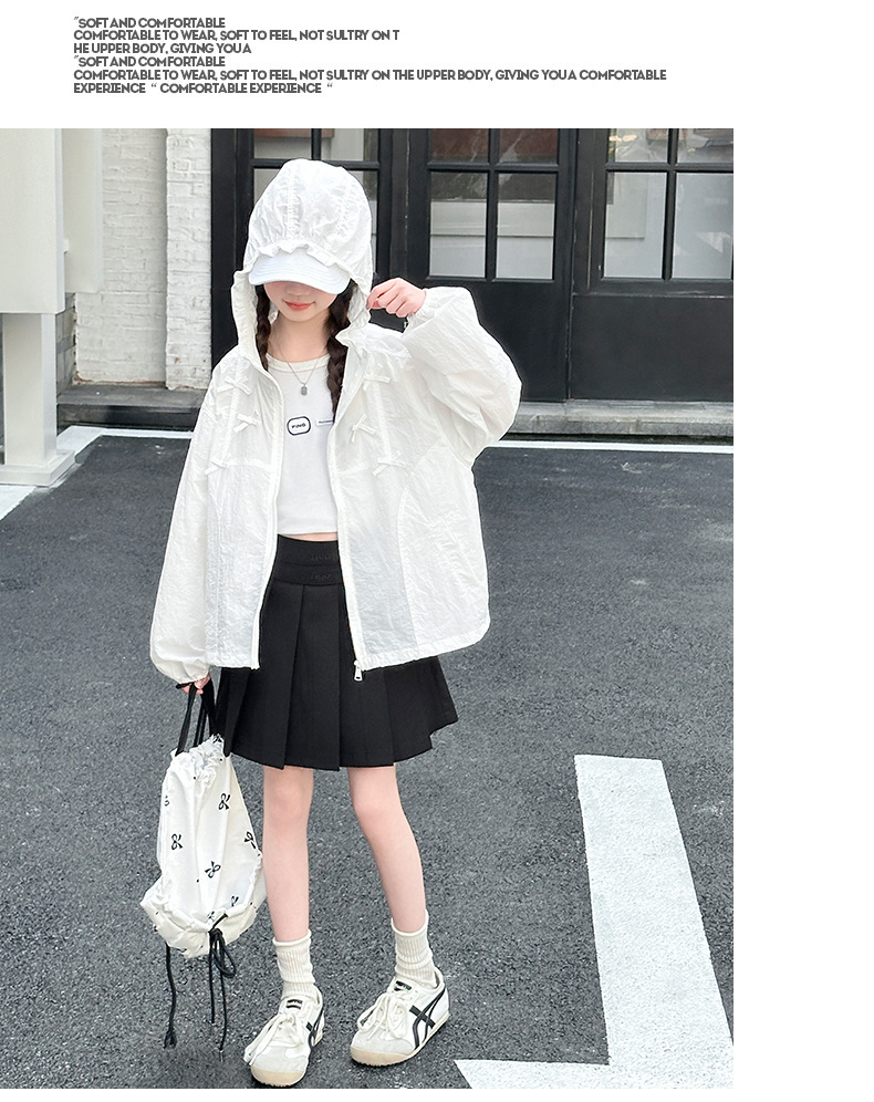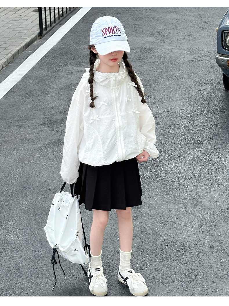소녀 선스크린 의류 2025 새로운 어린이 세련 된 세련된 후드 자켓 소녀 여름 얇은 에어컨 의류 탑스토어 가기