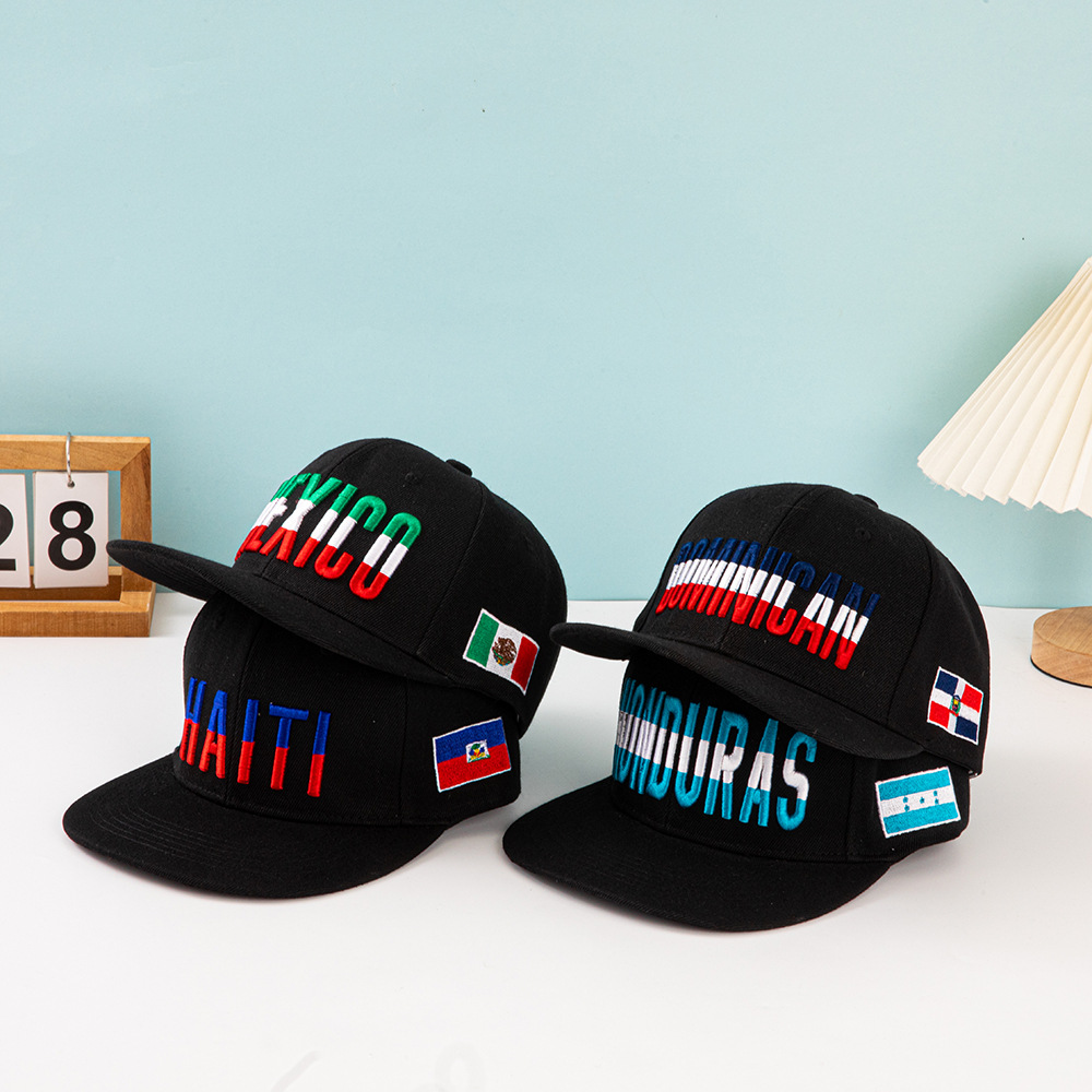 2025 새로운 국기 힙합 모자 컬러 매칭 자수 플랫 처마 3 차원 국경 다국적 야구 모자 재고 국기스토어 가기