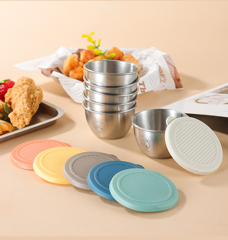 크로스 테두리 304 컵스 스테인레스 스틸 딥 박스 뚜껑 신선한 컨테이너 프라이드 치킨 밀봉 소스 샐러드 토마토 소스