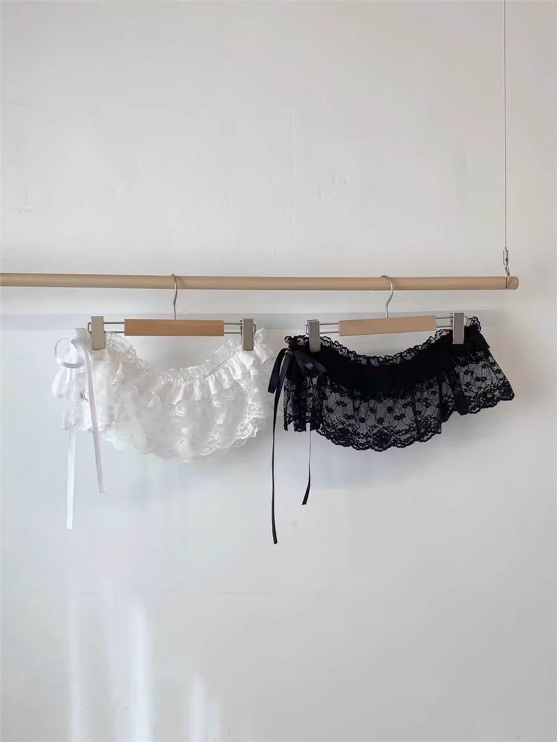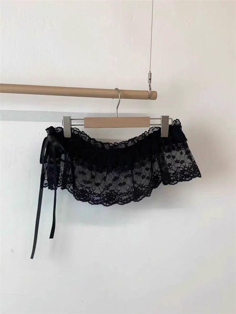 중공업 레이스 업 우드 이어 엣지 레이스 스커트 여성 봄 2025 새로운 디자인 센스 스택 아트 커튼 앞치마 짧은 치마