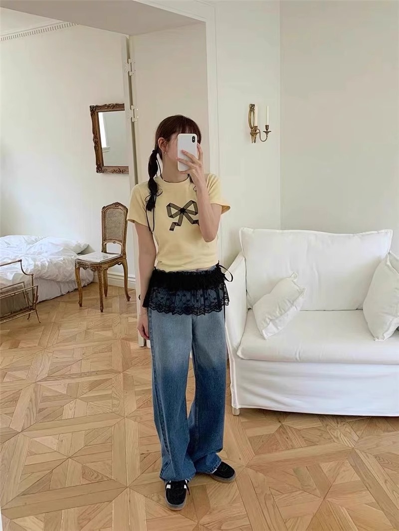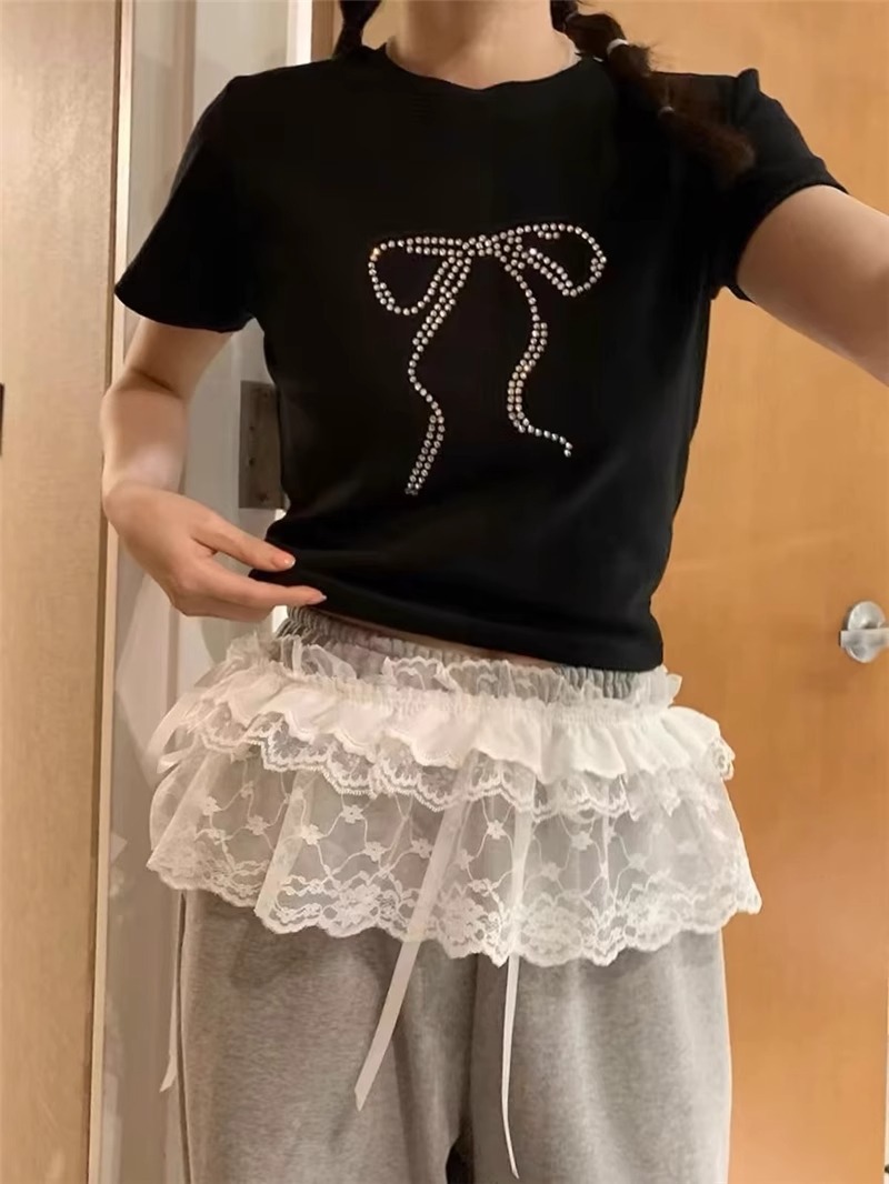 중공업 레이스 업 우드 이어 엣지 레이스 스커트 여성 봄 2025 새로운 디자인 센스 스택 아트 커튼 앞치마 짧은 치마스토어 가기